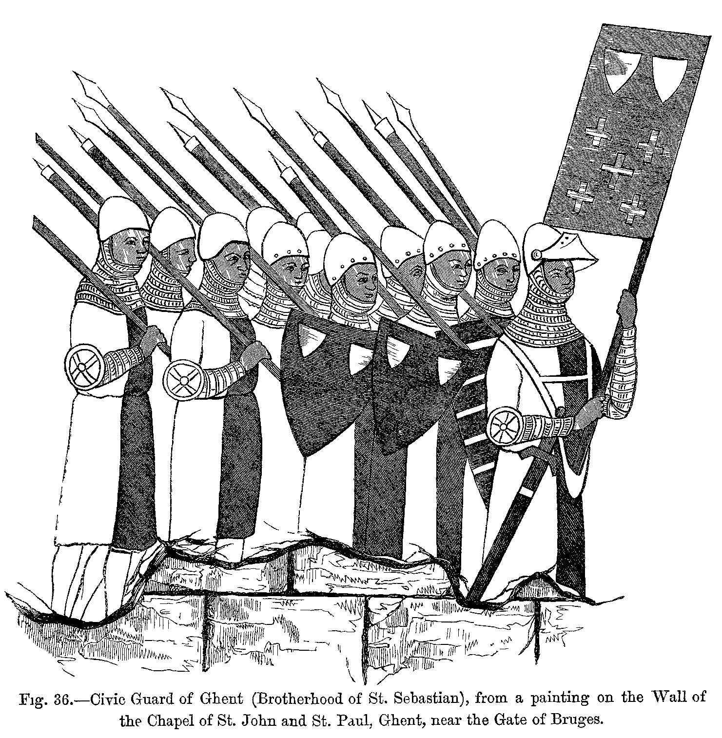 "By chausses was meant what we now call long stockings or hose. The stockings were of the same colour and material as the braies, and were kept up by the lower part of the braies being pulled over them, and tied with a string.
