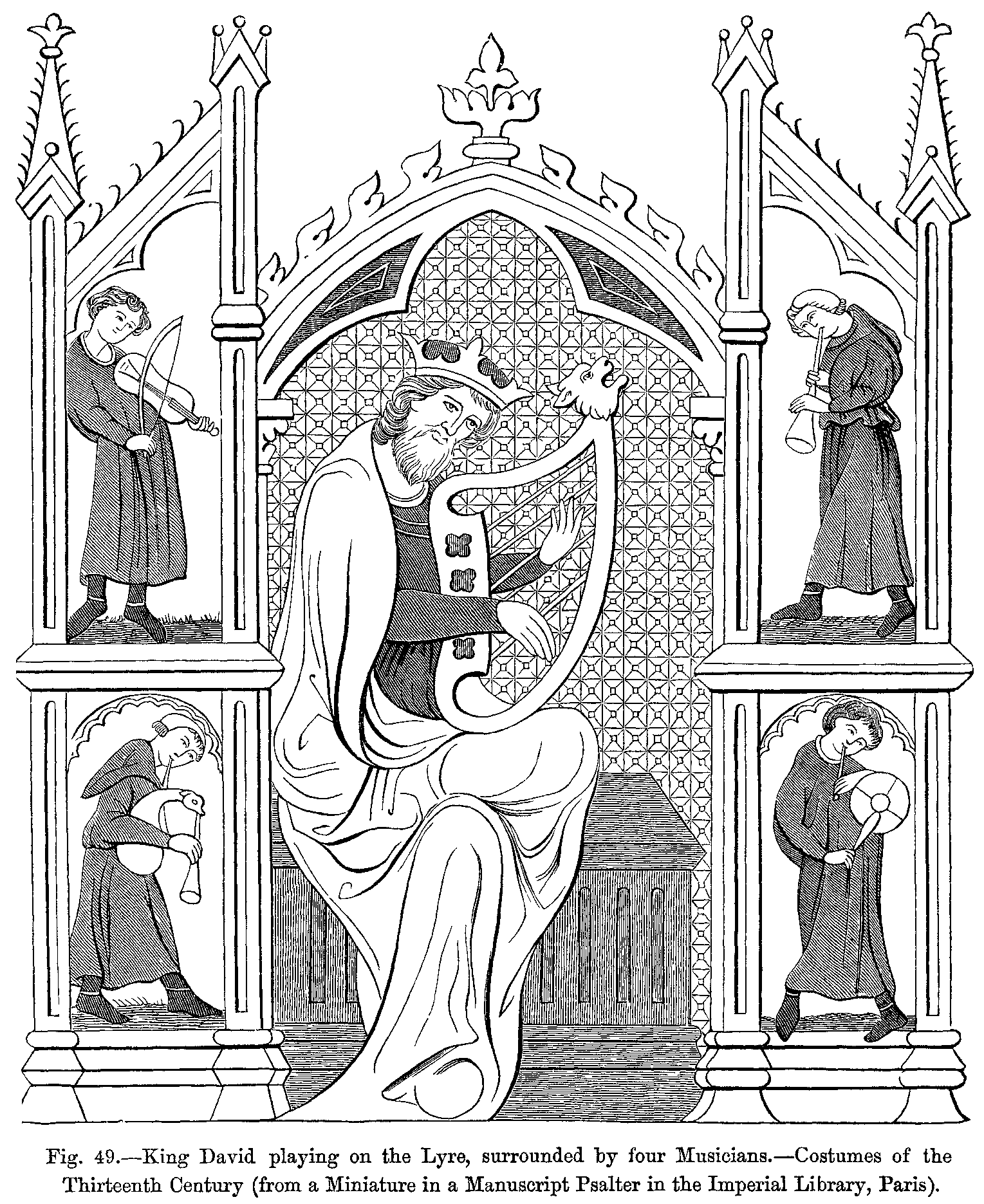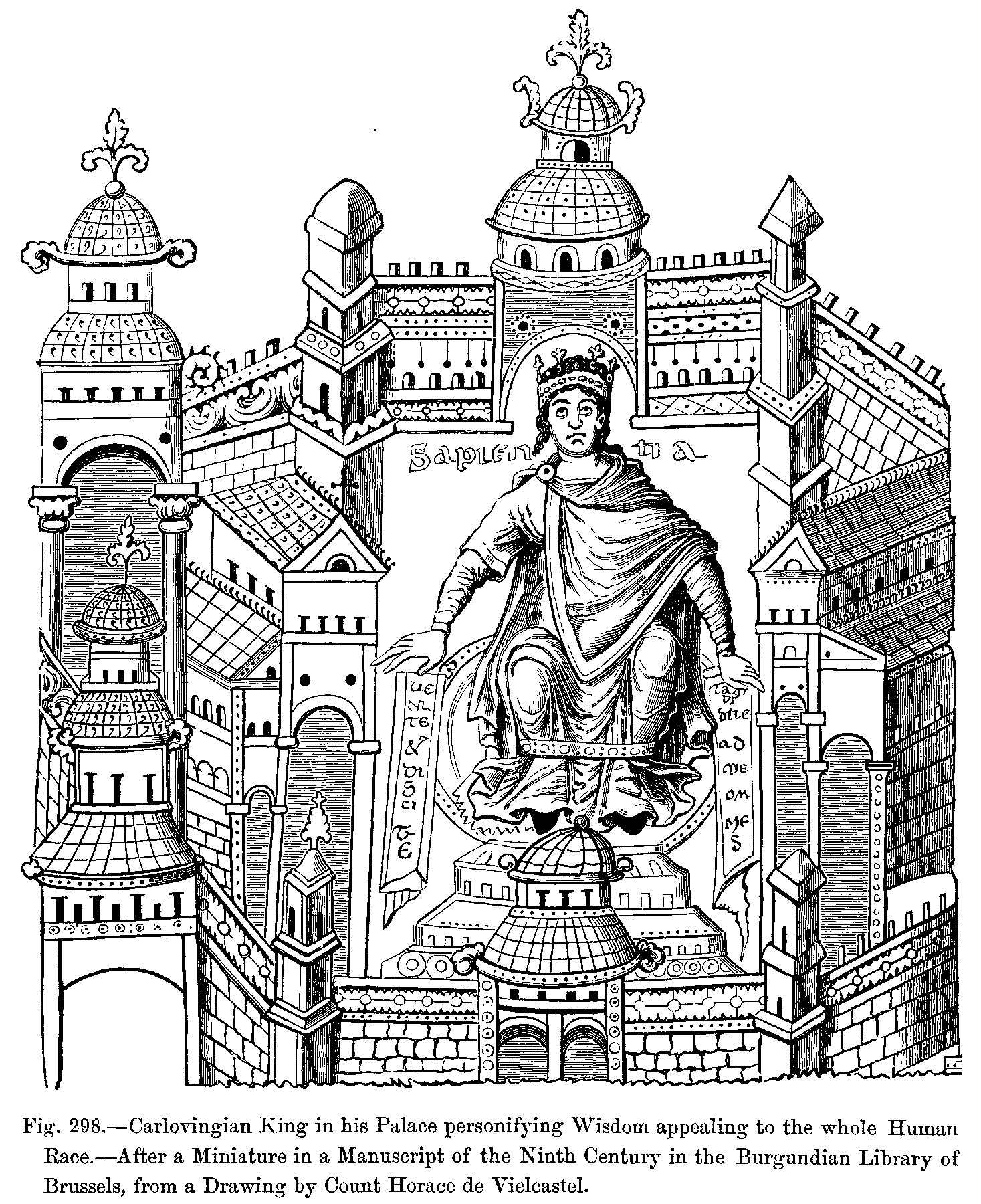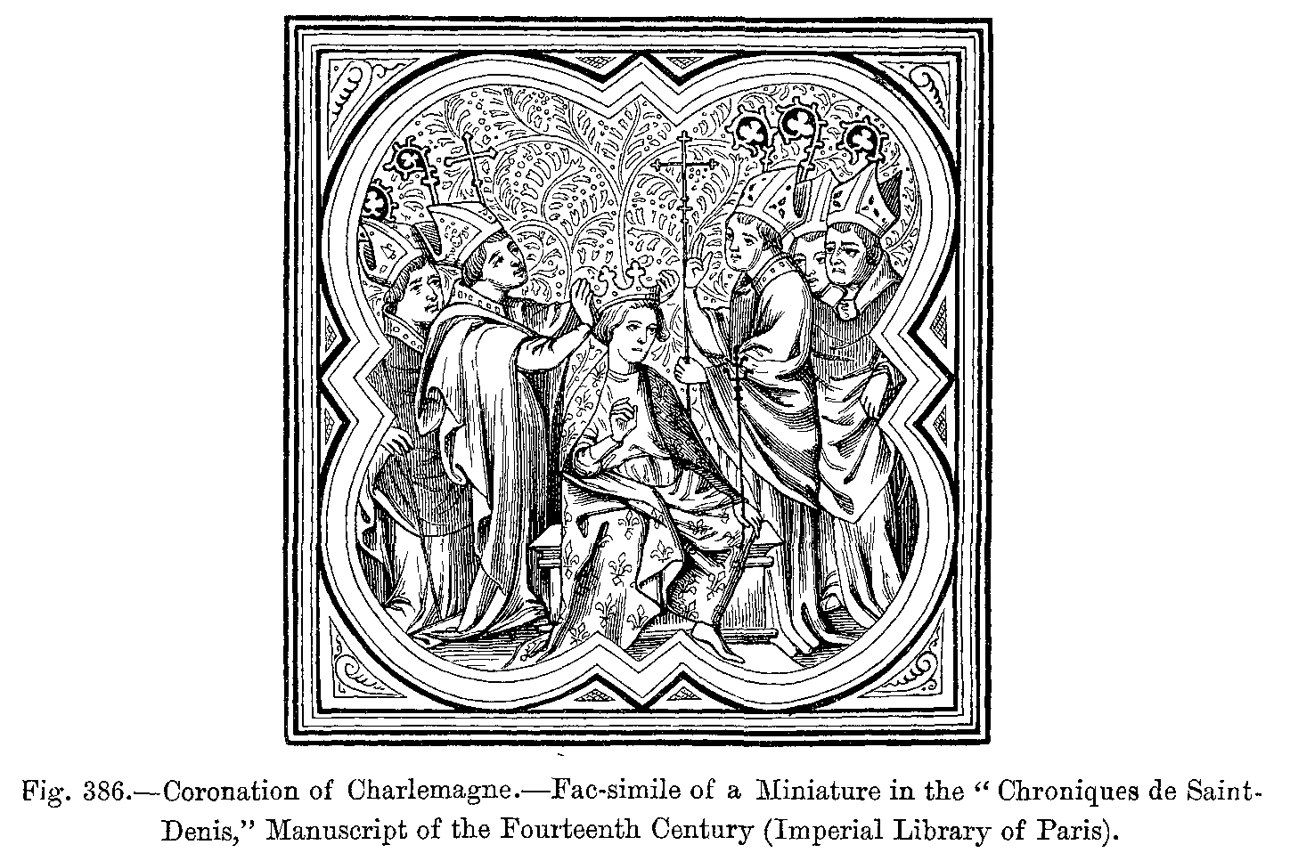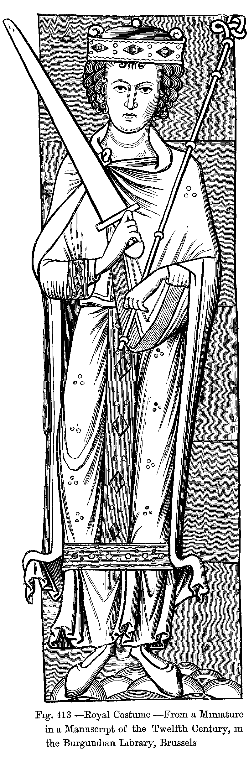 Fig. 413.--Royal Costume.--From a Miniature in a Manuscript of the Twelfth Century, in the Burgundian Library, Brussels.