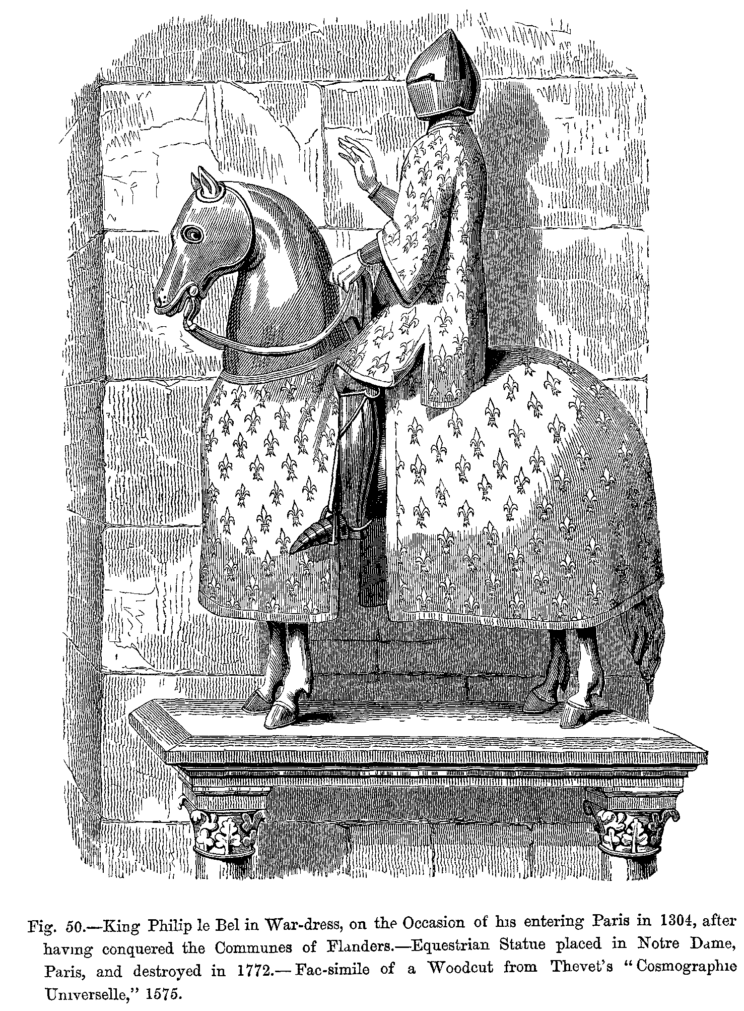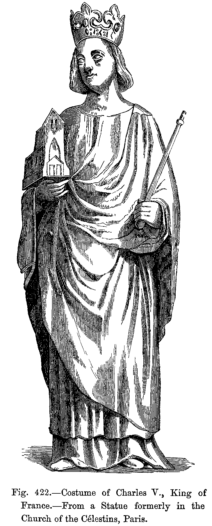 Fig. 422.--Costume of Charles V., King of France.--From a Statue formerly in the Church of the Célestins, Paris.