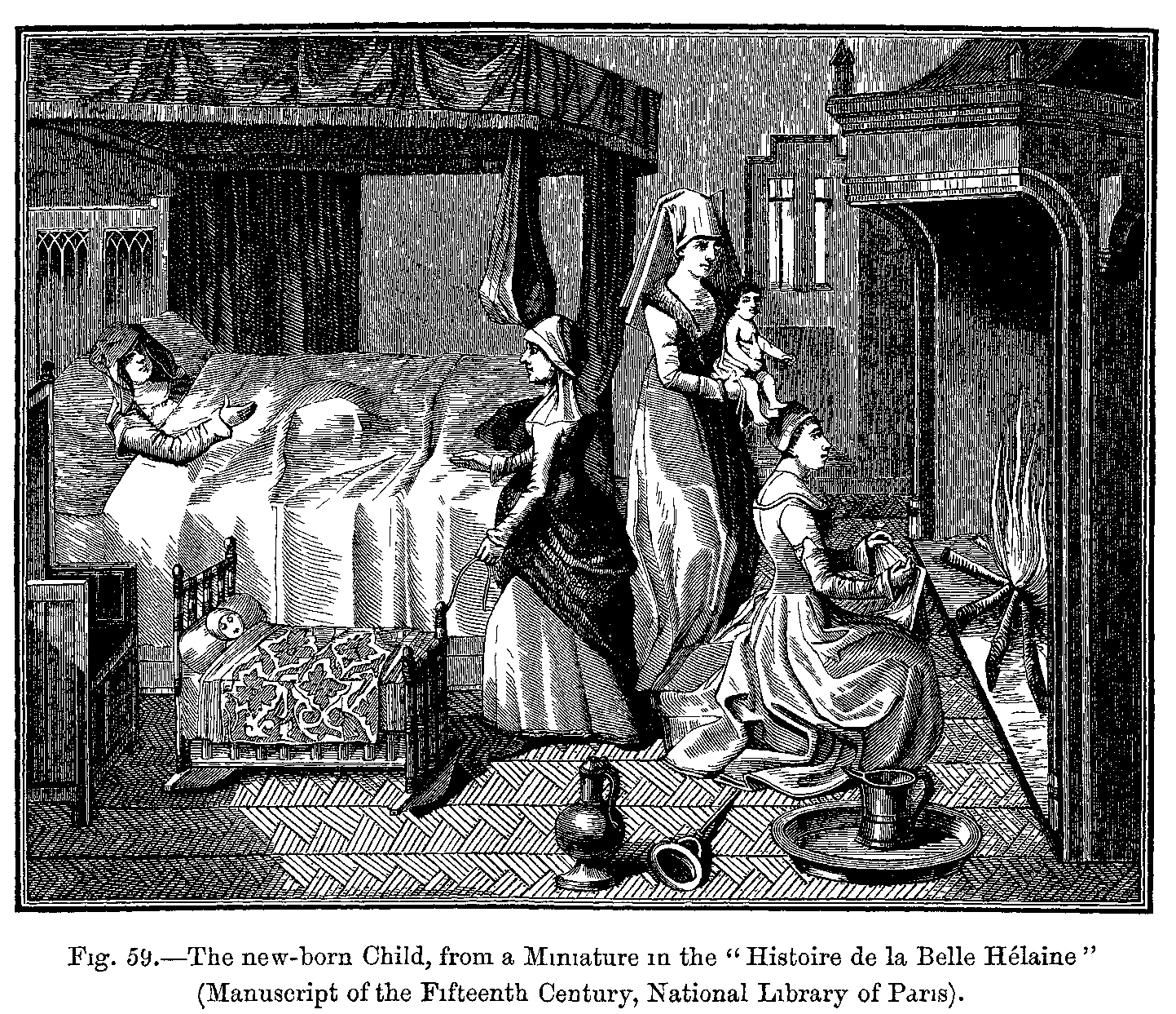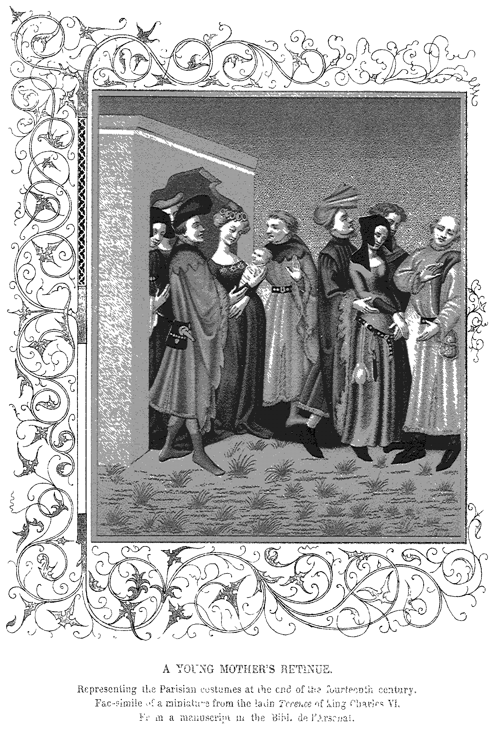 4. A Young Mother's Retinue. Miniature from a Latin "Terence" of Charles VI. Costumes of the Fourteenth Century.