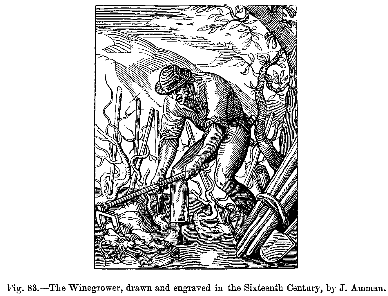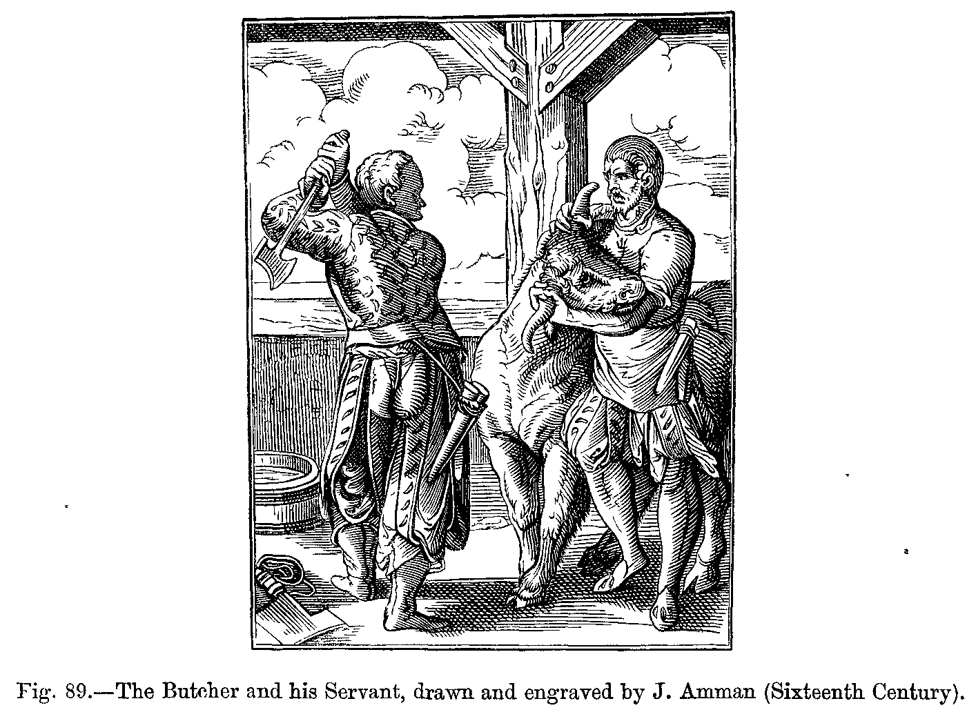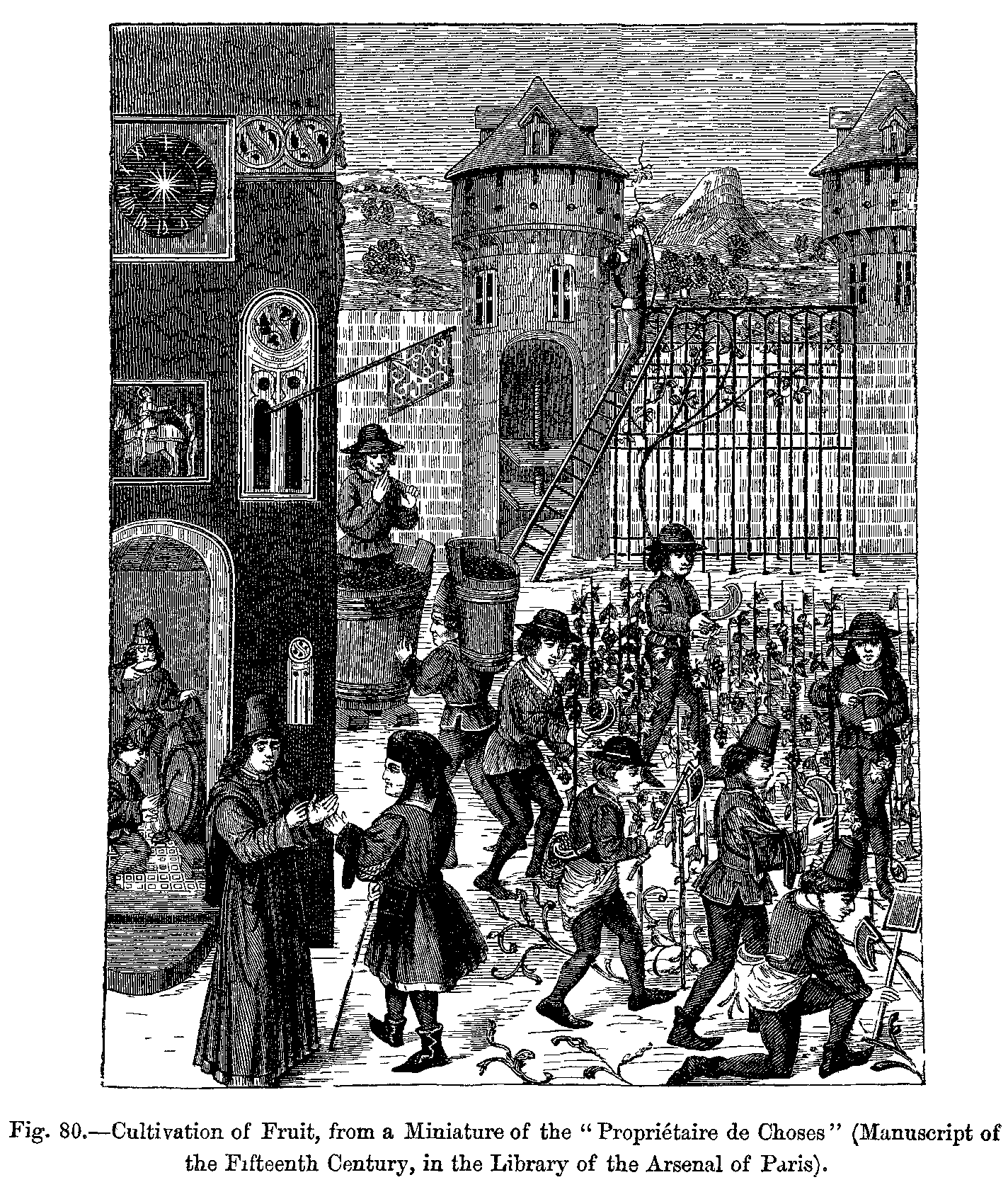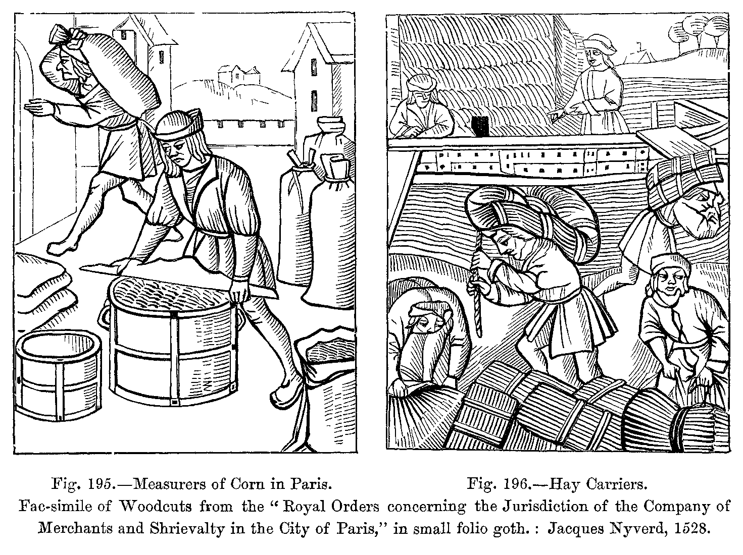 Fig. 417.--Costumes of the Common People in the Fourteenth Century: Italian Gardener and Woodman.--From two Engravings in the Bonnart Collection.