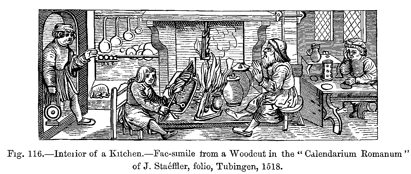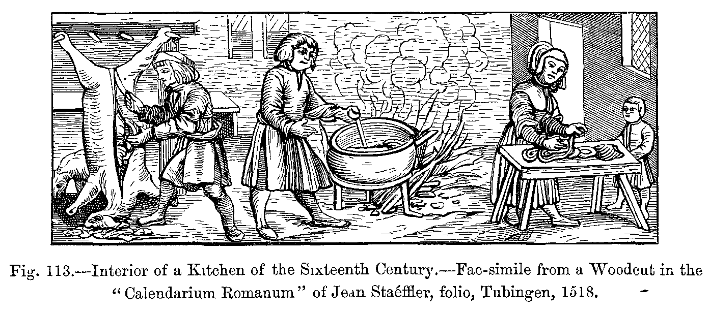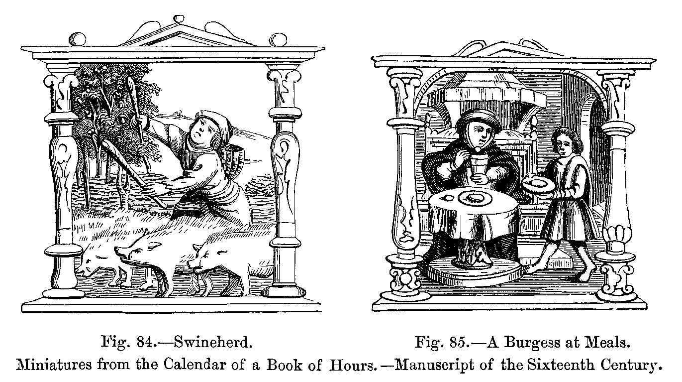History of Bread.--Vegetables and Plants used in Cooking.--Fruits.--Butchers' Meat.--Poultry, Game.--Milk, Butter, Cheese, and Eggs.--Fish and Shellfish.--Beverages: Beer, Cider, Wine, Sweet Wine, Refreshing Drinks, Brandy.--Cookery.--Soups, Boiled Food, Pies, Stews, Salads, Roasts, Grills.--Seasoning, Truffles, Sugar, Verjuice.--Sweets, Desserts, Pastry,--Meals and Feasts.--Rules of Serving at Table from the Fifteenth to the Sixteenth Centuries.