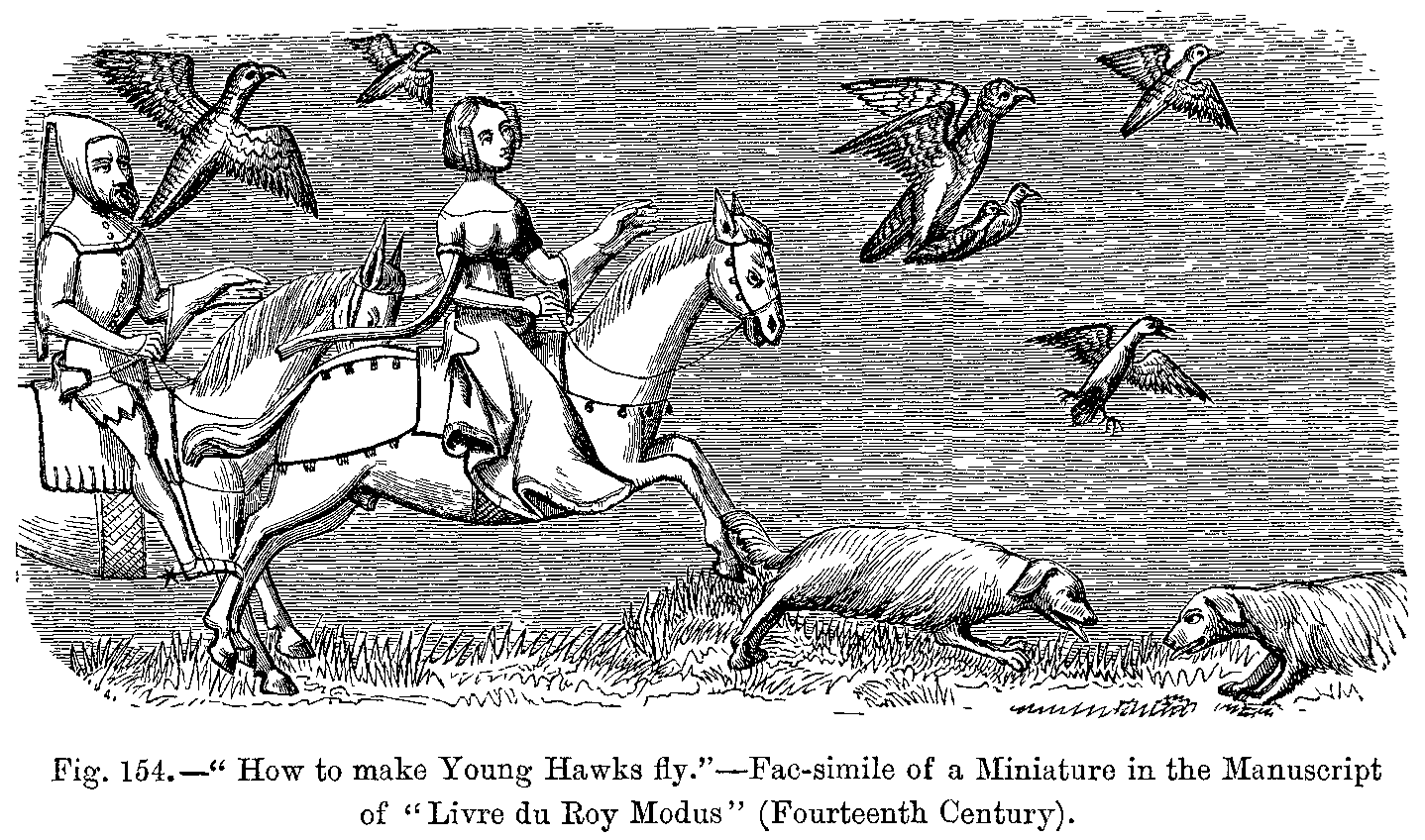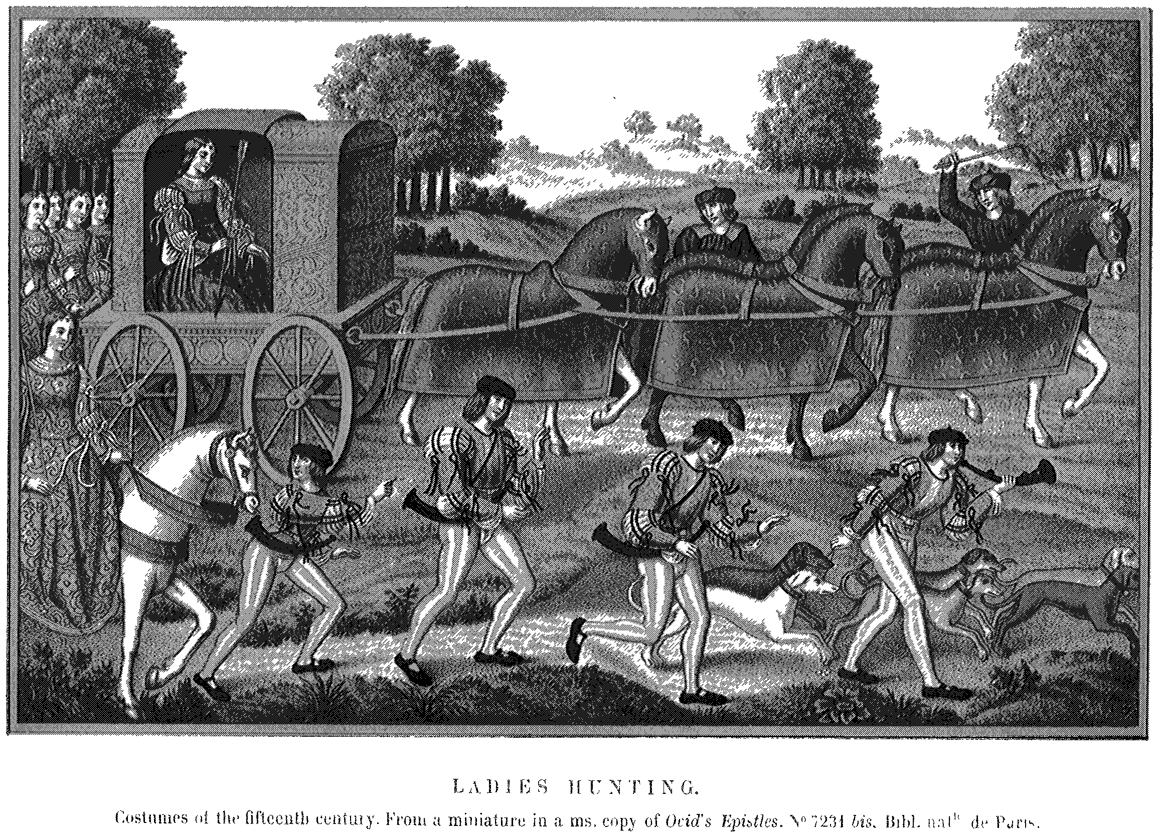 6. Ladies Hunting. From a Miniature in a Manuscript Copy of "Ovid's Epistles." Costumes of the Fifteenth Century.