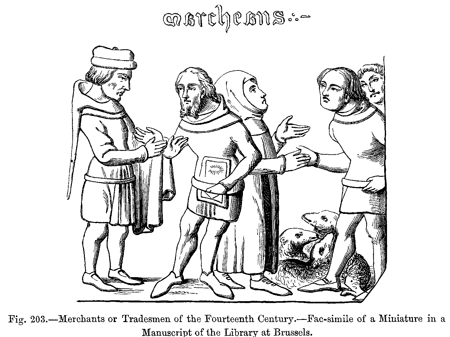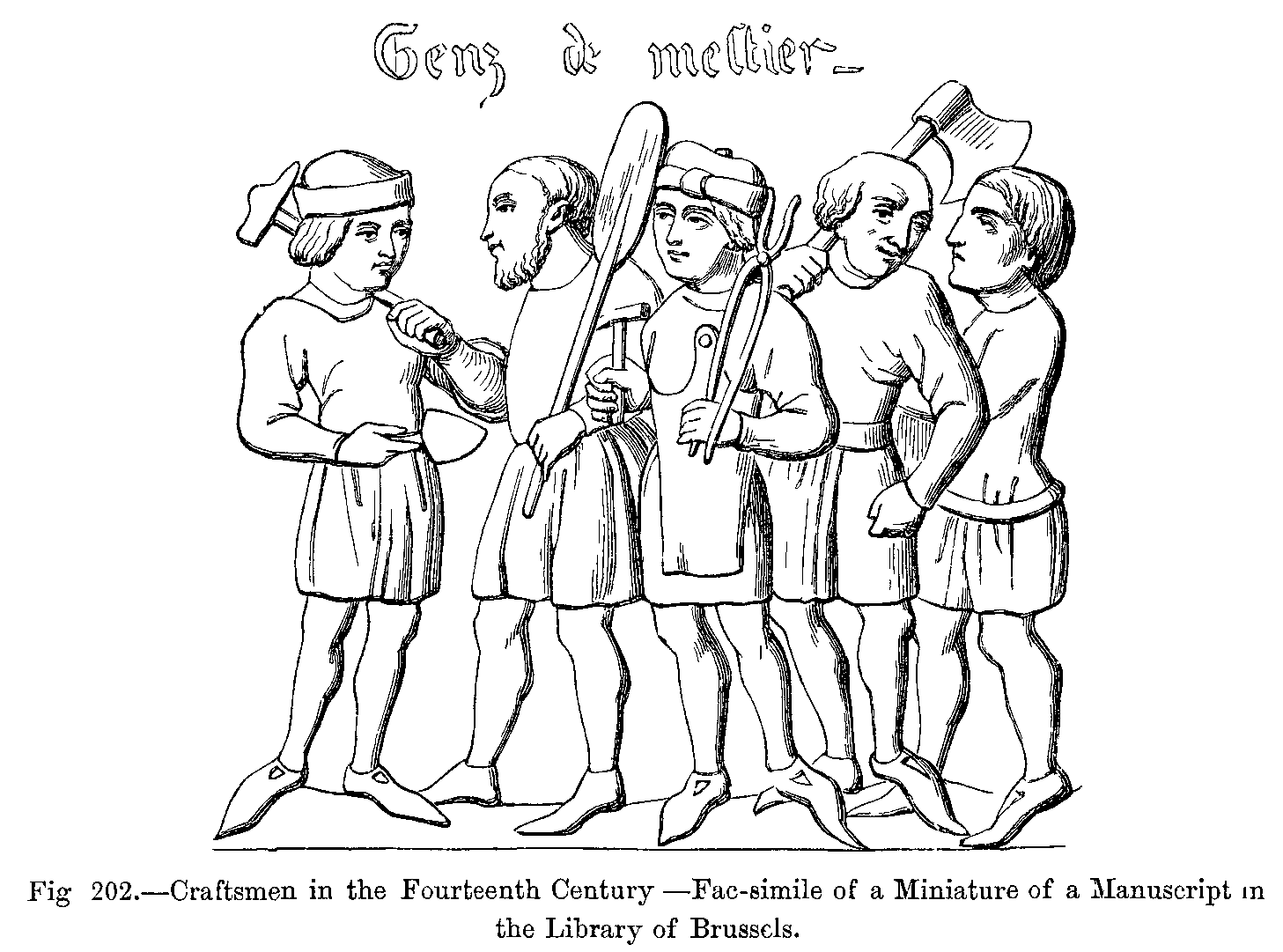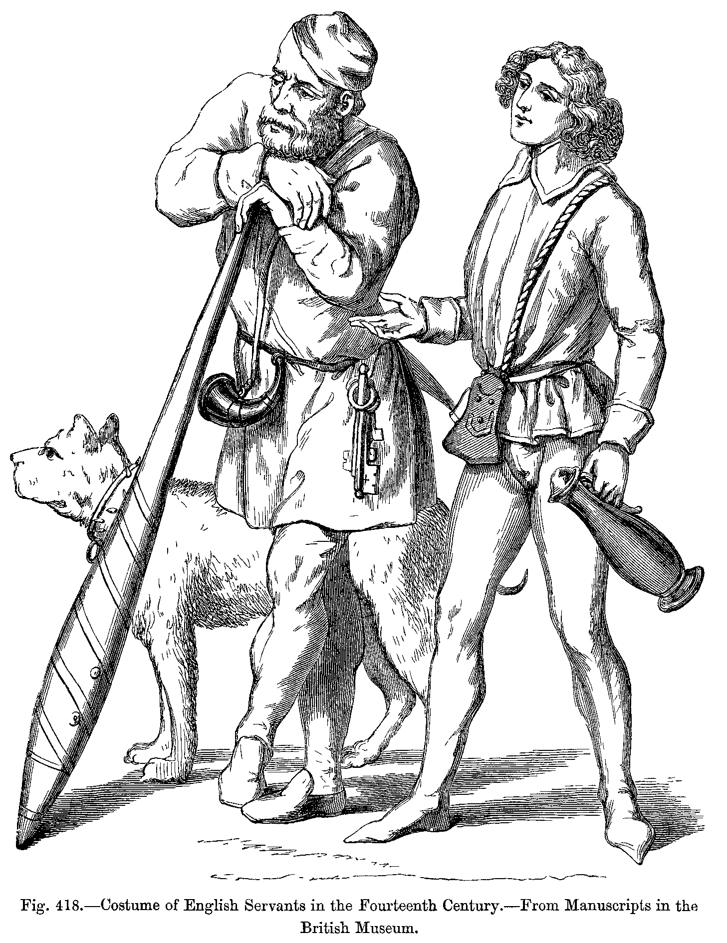 Fig. 418.--Costume of English Servants in the Fourteenth Century.--From Manuscripts in the British Museum.
