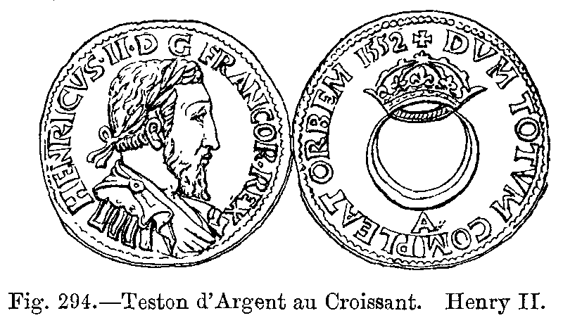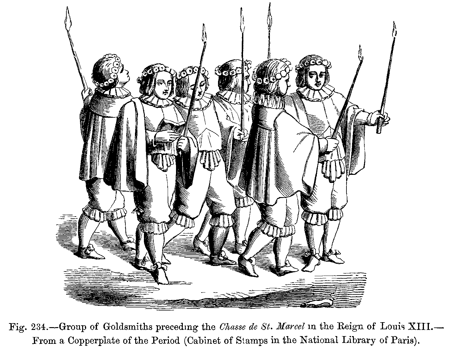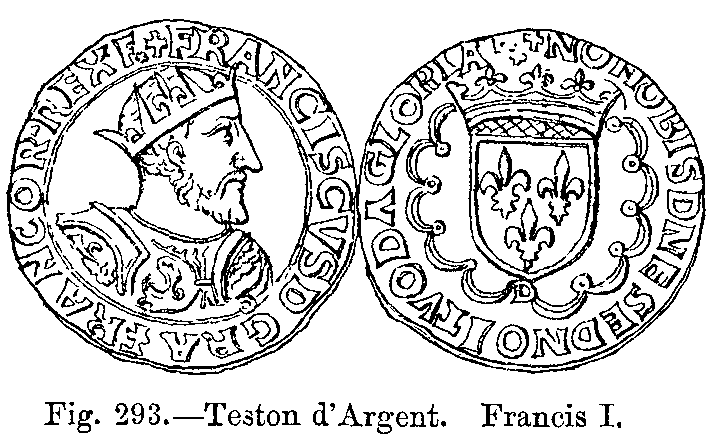Under Francis I., the costumes adopted from Italy remained almost stationary (Fig. 432). Under Henri II. (Figs. 433 and 434), and especially after the death of that prince, the taste for frivolities made immense progress, and the style of dress in ordinary use seemed day by day to lose the few traces of dignity which it had previously possessed.