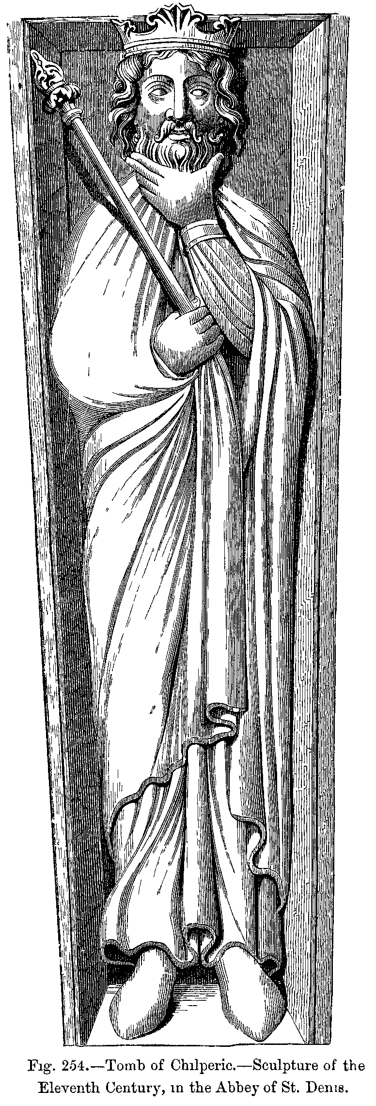 Fig. 402.--Costume of King Clovis (Sixth Century).--From a Statue on his Tomb, formerly in the Abbey of St. Geneviève.