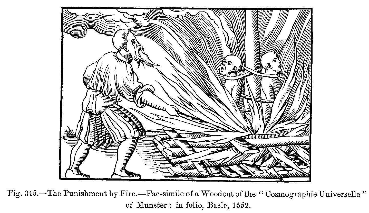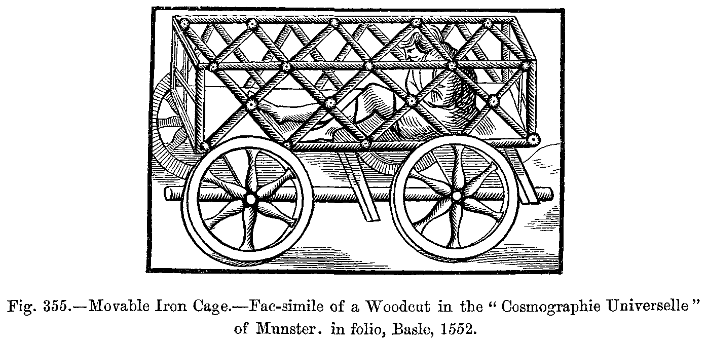 Refinements of Penal Cruelty.--Tortures for different Purposes.--Water, Screw-boards, and the Rack.--The Executioner.--Female Executioners.--Tortures.--Amende Honorable.--Torture of Fire, Real and Feigned.--Auto-da-fé.--Red-hot Brazier or Basin.--Beheading.--Quartering.--The Wheel.--Garotting.--Hanging.--The Whip.--The Pillory.--The Arquebuse.--Tickling.--Flaying.--Drowning.--Imprisonment.--Regulations of Prisons.--The Iron Cage.--"The Leads" of Venice.