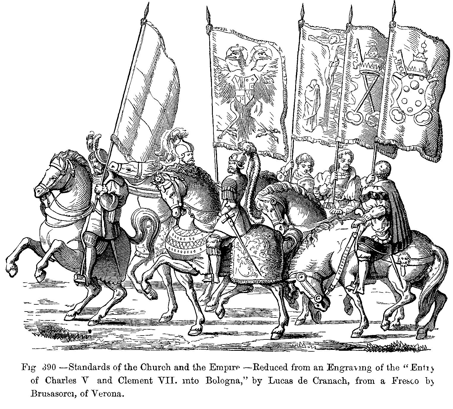 3. Louis XII. leaving Alexandria, on the 24th April, 1507, to chastise the City of Genoa. From a Miniature in the "Voyage de Gênes" of Jean Marot.
