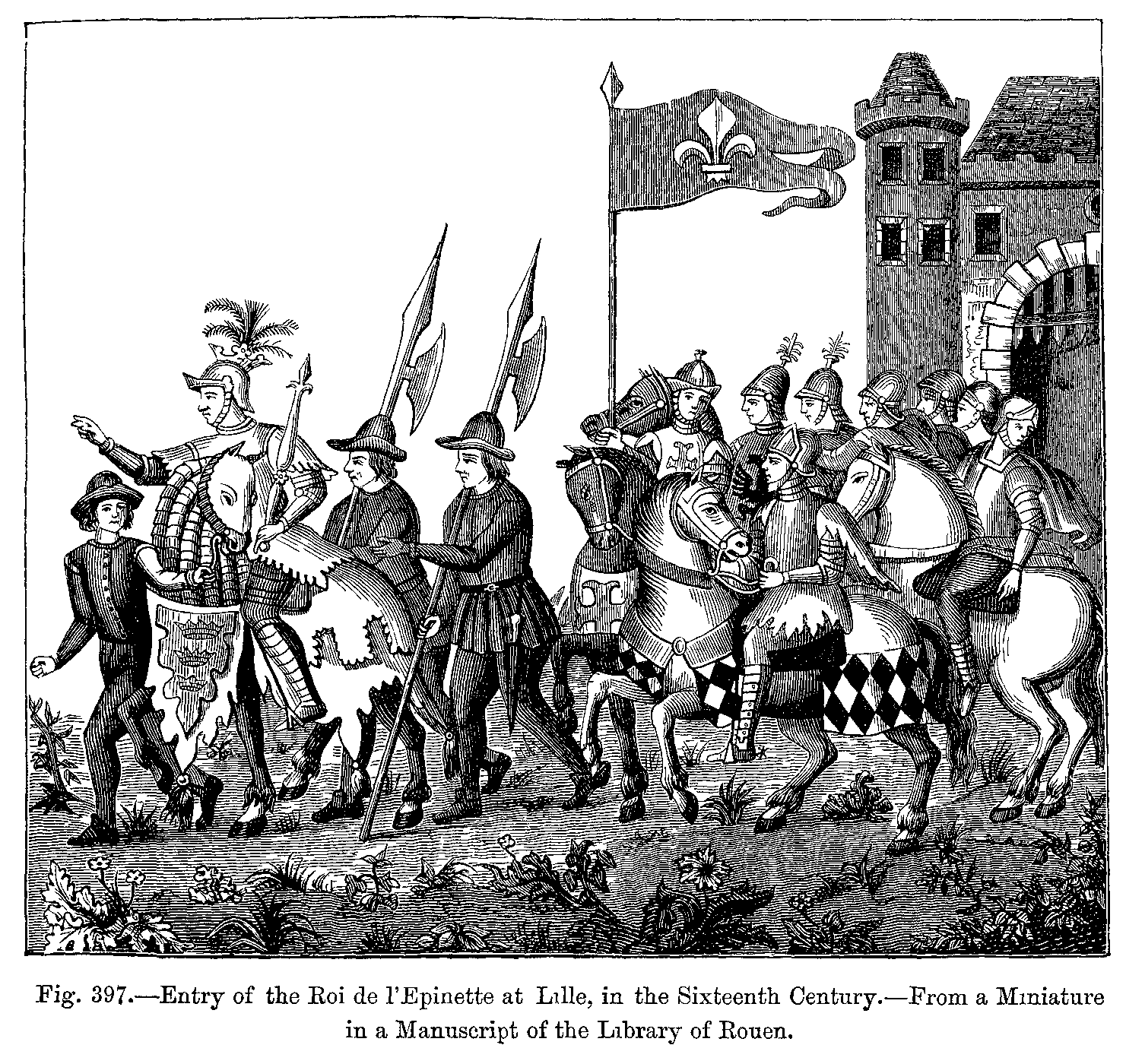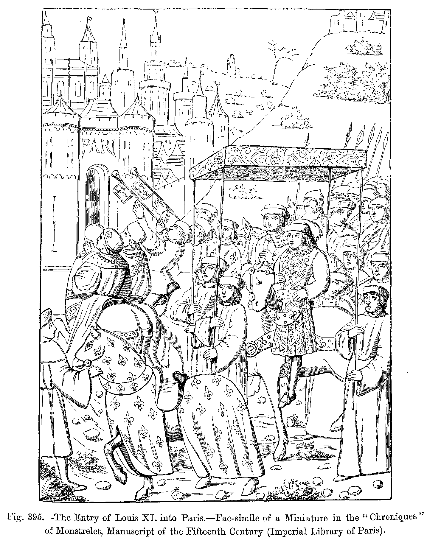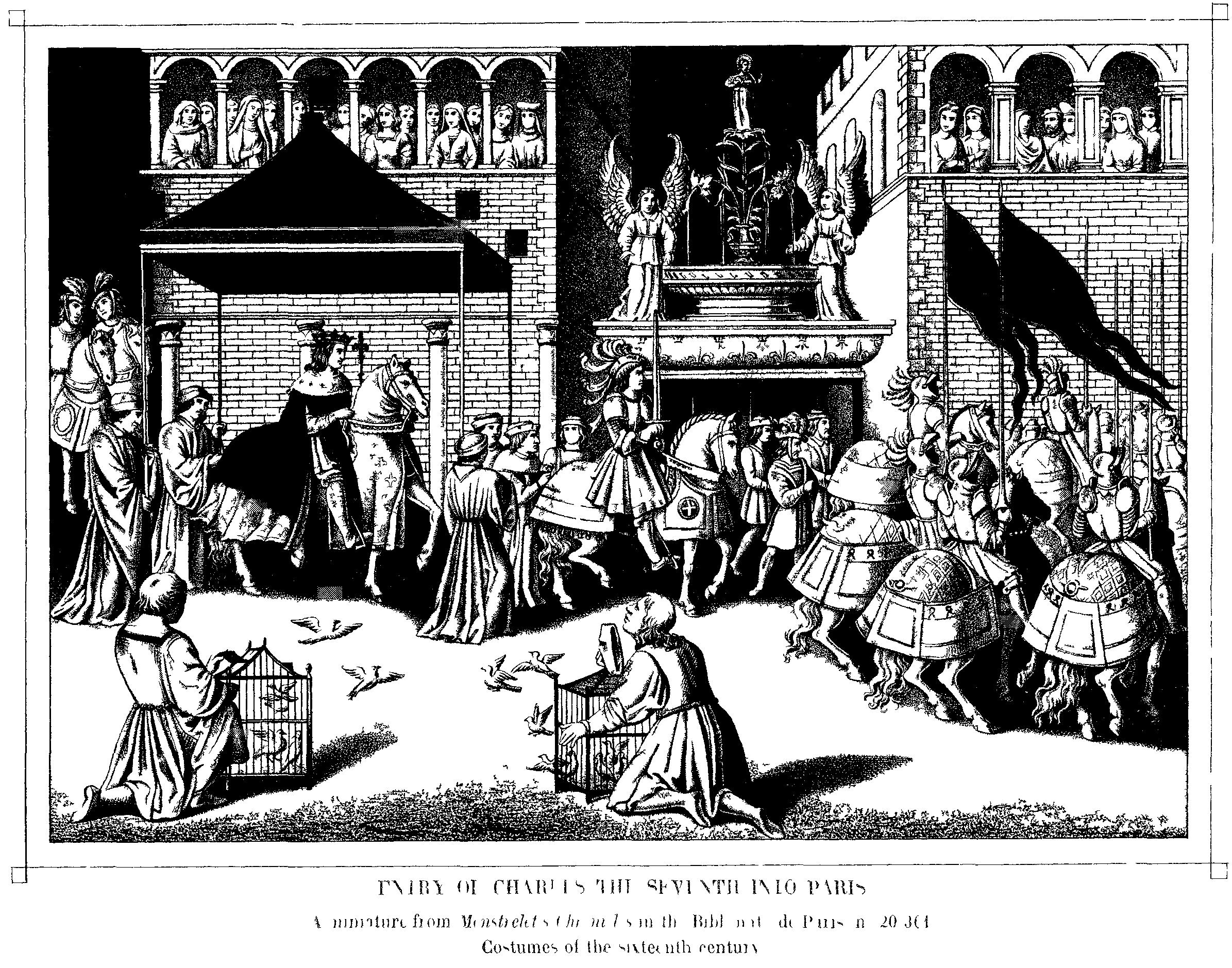13. Entry of Charles VII. into Paris. A Miniature from the "Chroniques d'Enguerrand de Monstrelet." Costumes of the Sixteenth Century.