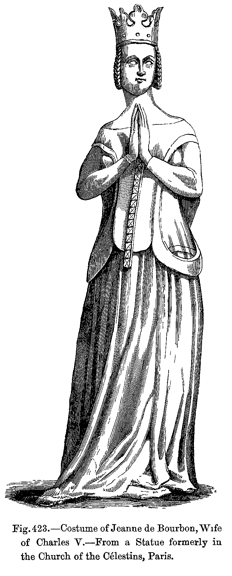 Fig. 423.--Costume of Jeanne de Bourbon, Wife of Charles V.--From a Statue formerly in the Church of the Célestins, Paris.