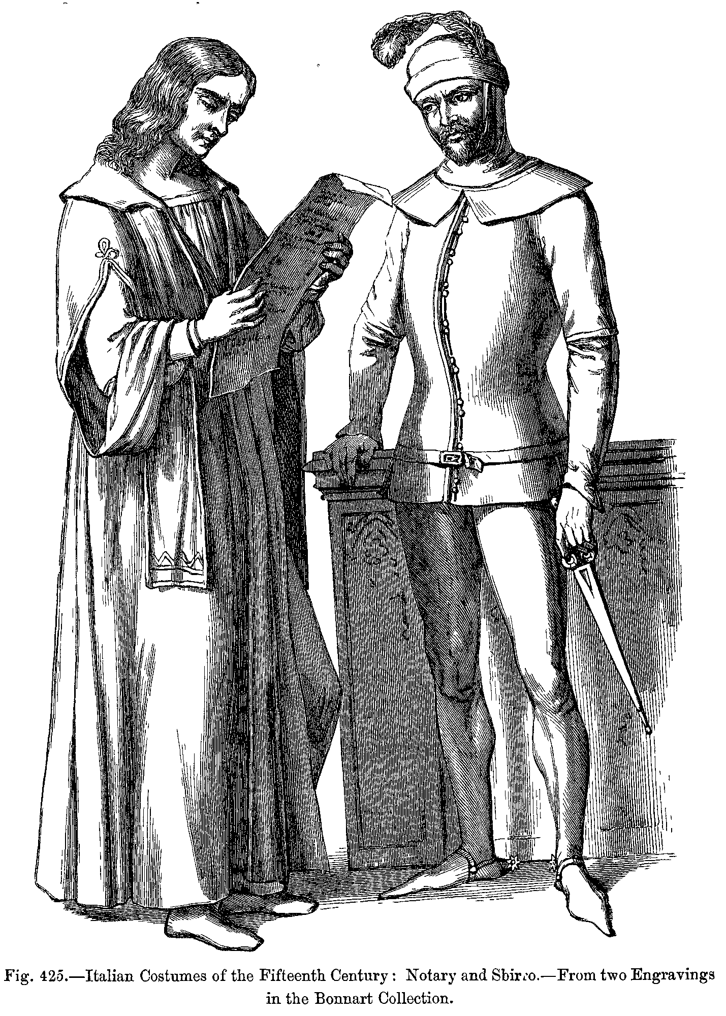 Fig. 425.--Italian Costumes of the Fifteenth Century: Notary and Sbirro.--From two Engravings in the Bonnart Collection.