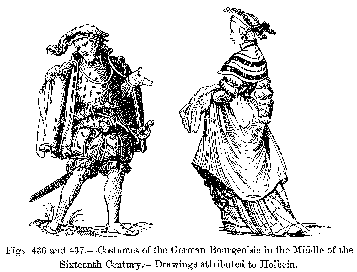 Figs. 436 and 437.--Costumes of the German Bourgeoisie in the Middle of the Sixteenth Century.--Drawings attributed to Holbein.
