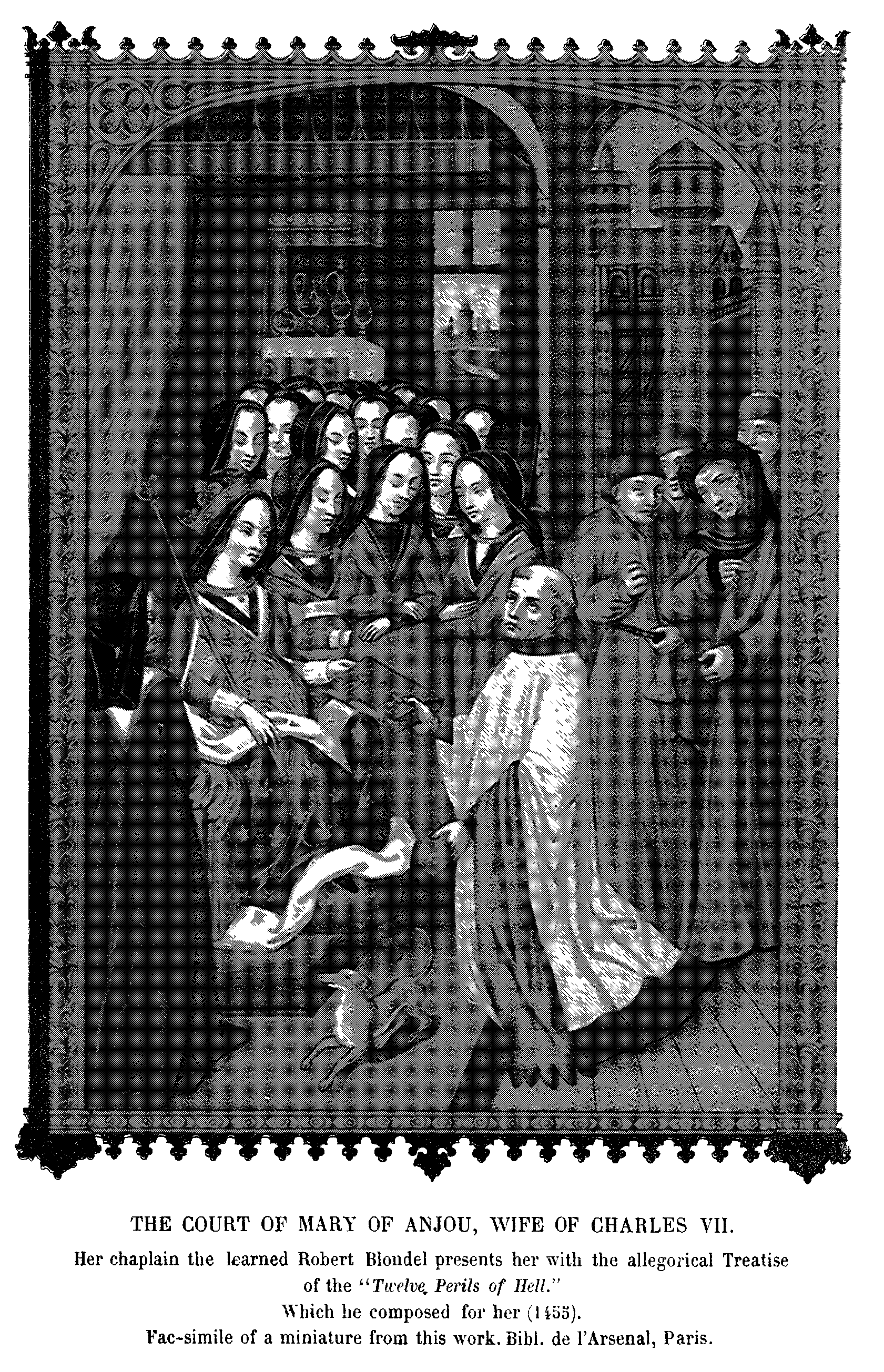 2. The Court of Marie of Anjou, Wife of Charles VII. Fac-simile of a Miniature from the "Douze Perilz d'Enfer." Costumes of the Fifteenth Century.
