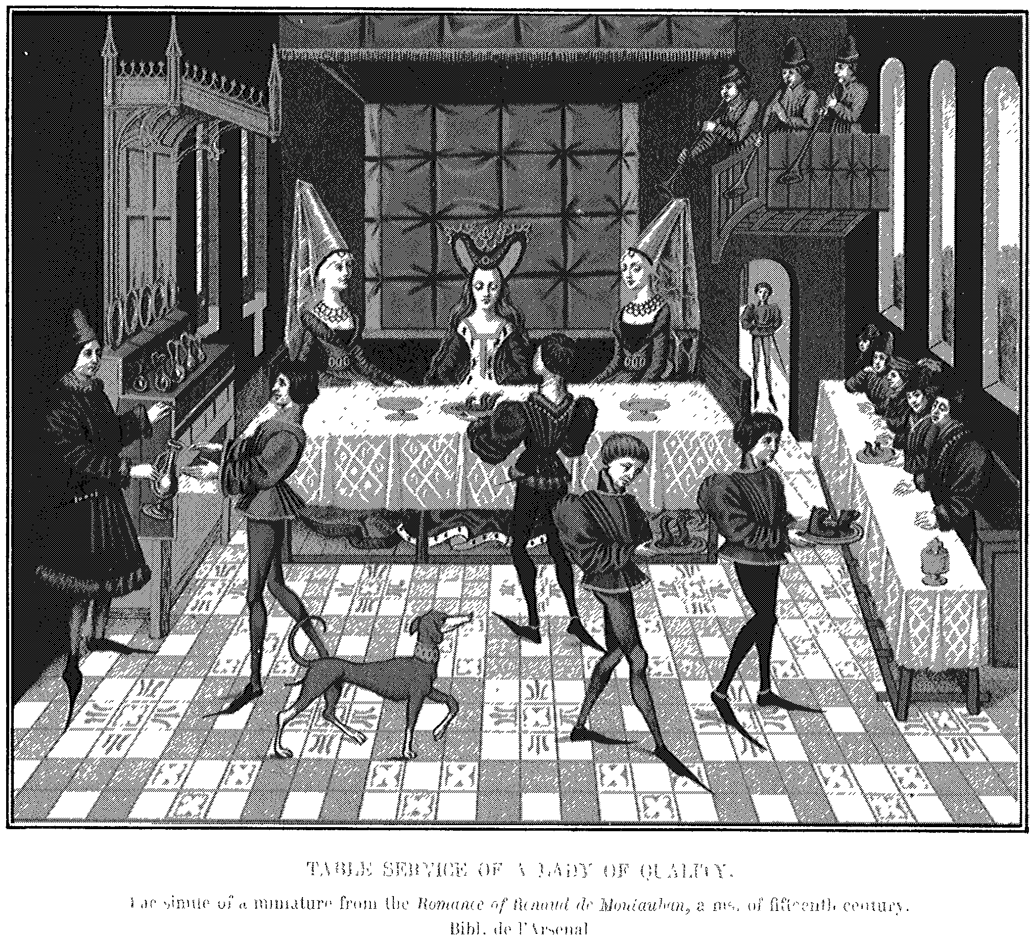 5. Table Service of a Lady of Quality. Fac-simile of a Miniature in the "Roman de Renaud de Montauban." Costumes of the Fifteenth Century.