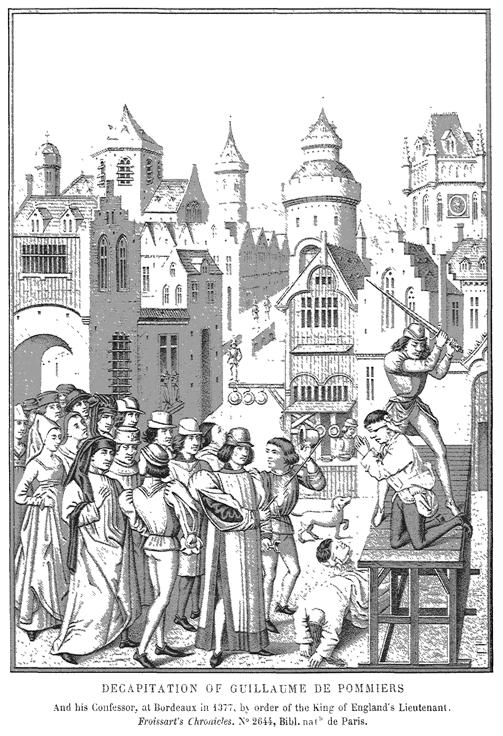 11. Decapitation of Guillaume de Pommiers and his Confessor at Bordeaux in 1377 ("Chroniques de Froissart").