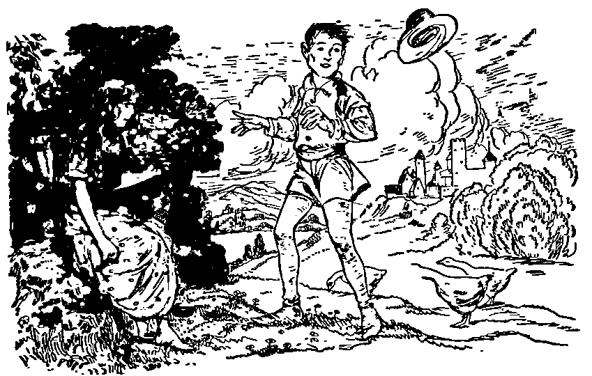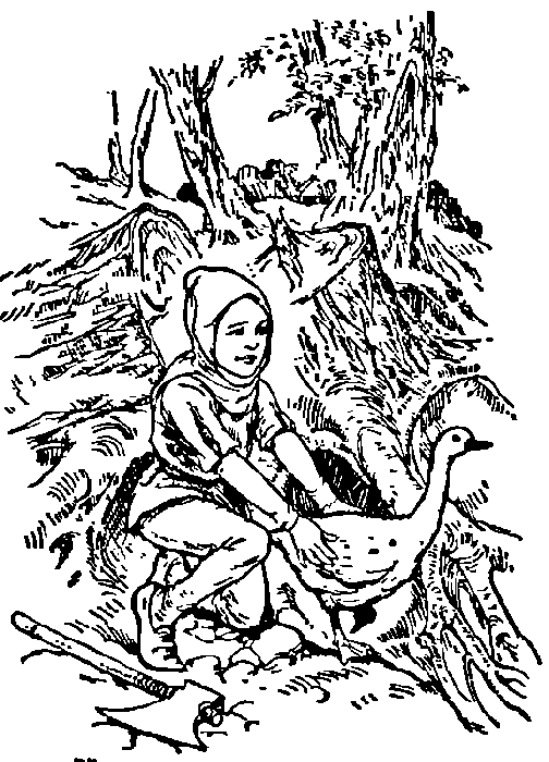 Then the wind came and blew off his hat, and off it flew a great distance over the hills and far away, so that he had to run after it: and when he came back, she had done up her hair again, and all was safe. So they watched the geese till it grew dark.