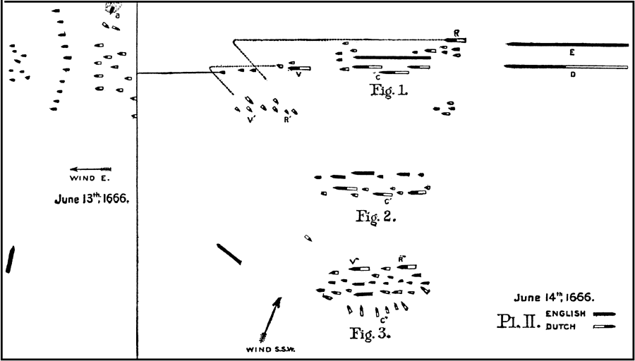 The student of naval war will therefore expect to find a particular interest in the plans and methods of the parties to this great contest, and especially where they concern the general conduct of the whole war, or of certain large and clearly defined portions of it; in the strategic purpose which gave, or should have given, continuity to their actions from first to last, and in the strategic movements which affected for good or ill the fortunes of the more limited periods, which may be called naval campaigns. For while it cannot be conceded that the particular battles are, even at this day, wholly devoid of tactical instruction, which it has been one of the aims of the preceding pages to elicit, it is undoubtedly true that, like all the tactical systems of history, they have had their day, and their present usefulness to the student is rather in the mental training, in the forming of correct tactical habits of thought, than in supplying models for close imitation. On the other hand, the movements which precede and prepare for great [507]battles, or which, by their skilful and energetic combinations, attain great ends without the actual contact of arms, depend upon factors more permanent than the weapons of the age, and therefore furnish principles of more enduring value.