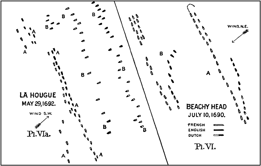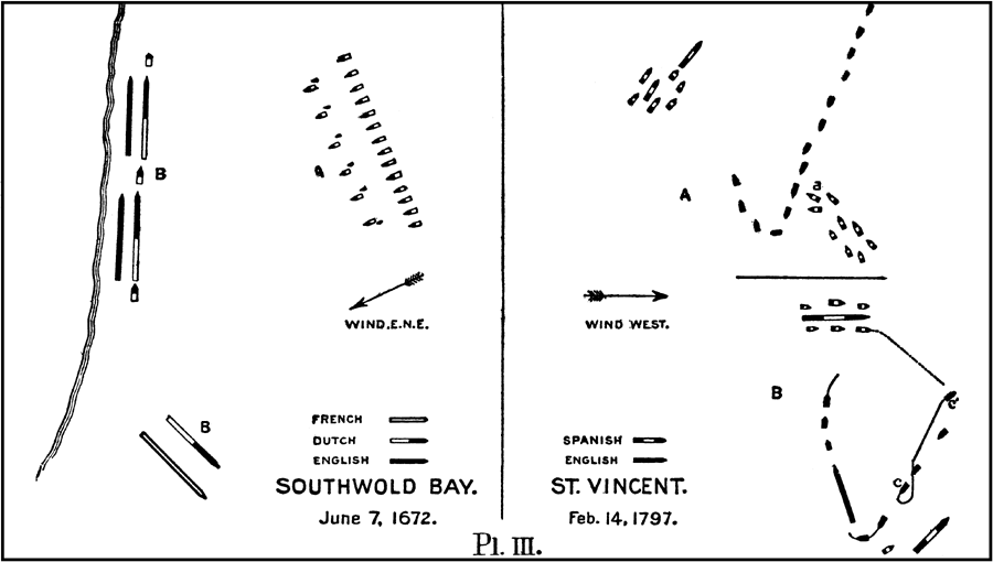 In the conduct of their offensive war the allied courts suffered from the divergent counsels and jealousies which have hampered the movements of most naval coalitions. The conduct of Spain appears to have been selfish almost to disloyalty, that of France more faithful, and therefore also militarily sounder; for hearty co-operation and concerted action against a common objective, wisely chosen, would have better forwarded the objects of both. It must be admitted, too, that the indications point to inefficient administration and preparation on the part of the allies, of Spain especially; and that the quality of the personnel[244] was inferior to that of [537]England. Questions of preparation and administration, however, though of deep military interest and importance, are very different from the strategic plan or method adopted by the allied courts in selecting and attacking their objectives, and so compassing the objects of the war; and their examination would not only extend this discussion unreasonably, but would also obscure the strategic question by heaping up unnecessary details foreign to its subject.