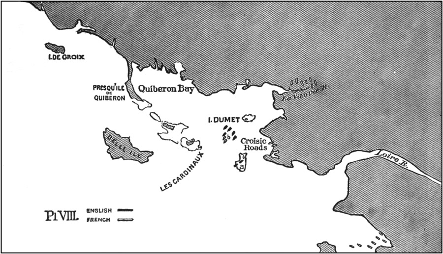 The problem would be greatly simplified if the blockading fleet could find a convenient anchorage on the flank of the route the enemy must take, as Nelson in 1804 and 1805 [528]used Maddalena Bay in Sardinia when watching the Toulon fleet,—a step to which he was further forced by the exceptionally bad condition of many of his ships. So Sir James Saumarez in 1800 even used Douarnenez Bay, on the French coast, only five miles from Brest, to anchor the in-shore squadron of the blockading force in heavy weather. The positions at Plymouth and Torbay cannot be considered perfectly satisfactory from this point of view; not being, like Maddalena Bay, on the flank of the enemy's route, but like Sta. Lucia, rather to its rear. Nevertheless, Hawke proved that diligence and well-managed ships could overcome this disadvantage, as Rodney also afterward showed on his less tempestuous station.