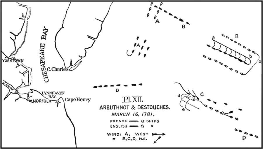 In North America the local bases of the war at its outbreak were New York, Narragansett Bay, and Boston. The two former were then held by the English, and were the most [516]important stations on the continent, from their position, susceptibility of defence, and resources. Boston had passed into the hands of the Americans, and was therefore at the service of the allies. From the direction actually given to the war, by diverting the active English operations to the Southern States in 1779, Boston was thrown outside the principal theatre of operations, and became from its position militarily unimportant; but had the plan been adopted of isolating New England by holding the line of the Hudson and Lake Champlain, and concentrating military effort to the eastward, it will be seen that these three ports would all have been of decisive importance to the issue. South of New York, the Delaware and Chesapeake Bays undoubtedly offered tempting fields for maritime enterprise; but the width of the entrances, the want of suitable and easily defended points for naval stations near the sea, the wide dispersal of the land forces entailed by an attempt to hold so many points, and the sickliness of the locality during a great part of the year, should have excepted them from a principal part in the plan of the first campaigns. It is not necessary to include them among the local bases of the war. To the extreme south the English were drawn by the ignis fatuus of expected support among the people. They failed to consider that even if a majority there preferred quiet to freedom, that very quality would prevent them from rising against the revolutionary government by which, on the English theory, they were oppressed; yet upon such a rising the whole success of this distant and in its end most unfortunate enterprise was staked. The local base of this war apart was Charleston, which passed into the hands of the British in May, 1780, eighteen months after the first expedition had landed in Georgia.