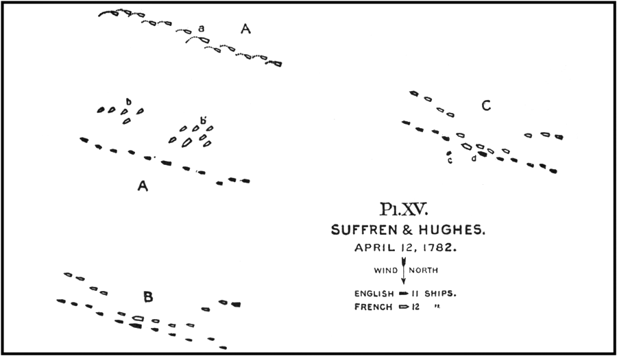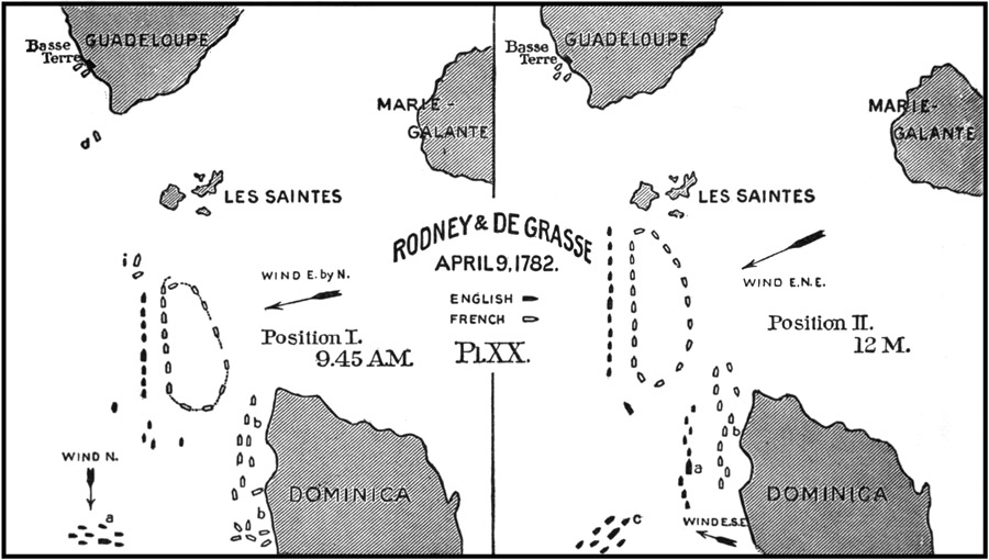 [204] April 29, 1781, off Martinique, twenty-four ships to eighteen; January, 1782, thirty to twenty-two; April 9, 1782, thirty to twenty.