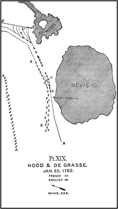 The commercial value of the English West Indies made them tempting objects to the French, who adapted themselves with peculiar readiness to the social conditions of that region, in which their colonial possessions were already extensive. Besides the two finest of the Lesser Antilles, Guadeloupe and Martinique, which she still retains, France then held Sta. Lucia and the western half of Hayti. She might well hope by successful war to add most of the English Antilles, and thus to round off a truly imperial tropical dependency; while, though debarred from Jamaica by the susceptibilities of Spain, it might be possible to win back that magnificent island for an allied and weaker nation. But however desirable as possessions, and therefore as objects, the smaller Antilles might be, their military tenure depended too entirely upon control of the sea for them to be in themselves proper objectives. The French government, therefore, forbade its naval commanders to occupy such as they might seize. They were to make the garrisons prisoners, destroy the defences, and so retire. In the excellent military port of Fort Royal, Martinique, in Cap Français, and in the strong allied harbor of Havana, a fleet of adequate size found good, secure, and well-distributed bases; while the early and serious loss of Sta. Lucia must be attributed to the mismanagement of the French fleet and the professional ability of the English admiral. On shore, in the West Indies, the rival powers therefore found themselves about equally provided with the necessary points of support; mere occupation of others could not add to their military strength, thenceforth dependent upon the numbers and quality of the fleets. To extend occupation further with safety, the first need [513]was to obtain maritime supremacy, not only locally, but over the general field of war. Otherwise occupation was precarious, unless enforced by a body of troops so large as to entail expense beyond the worth of the object. The key of the situation in the West Indies being thus in the fleets, these became the true objectives of the military effort; and all the more so because the real military usefulness of the West Indian ports in this war was as an intermediate base, between Europe and the American continent, to which the fleets retired when the armies went into winter quarters. No sound strategic operation on shore was undertaken in the West Indies except the seizure of Sta. Lucia by the English, and the abortive plan against Jamaica in 1782; nor was any serious attempt against a military port, as Barbadoes or Fort Royal, possible, until naval preponderance was assured either by battle or by happy concentration of force. The key of the situation, it must be repeated, was in the fleet.