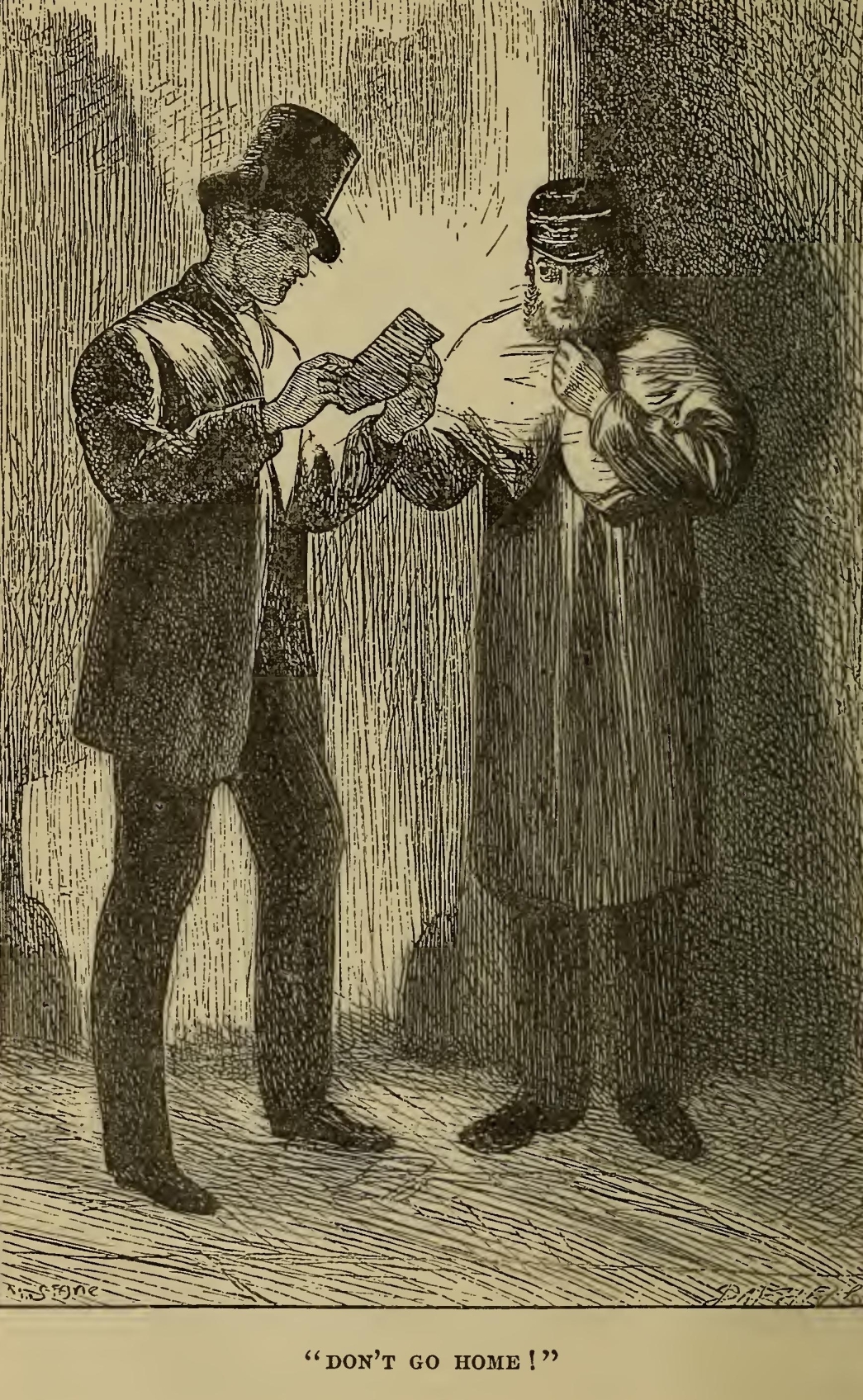 “You bring me, to-morrow morning early, that file and them wittles. You bring the lot to me, at that old Battery over yonder. You do it, and you never dare to say a word or dare to make a sign concerning your having seen such a person as me, or any person sumever, and you shall be let to live. You fail, or you go from my words in any partickler, no matter how small it is, and your heart and your liver shall be tore out, roasted, and ate. Now, I ain’t alone, as you may think I am. There’s a young man hid with me, in comparison with which young man I am a Angel. That young man hears the words I speak. That young man has a secret way pecooliar to himself, of getting at a boy, and at his heart, and at his liver. It is in wain for a boy to attempt to hide himself from that young man. A boy may lock his door, may be warm in bed, may tuck himself up, may draw the clothes over his head, may think himself comfortable and safe, but that young man will softly creep and creep his way to him and tear him open. I am a keeping that young man from harming of you at the present moment, with great difficulty. I find it wery hard to hold that young man off of your inside. Now, what do you say?”
