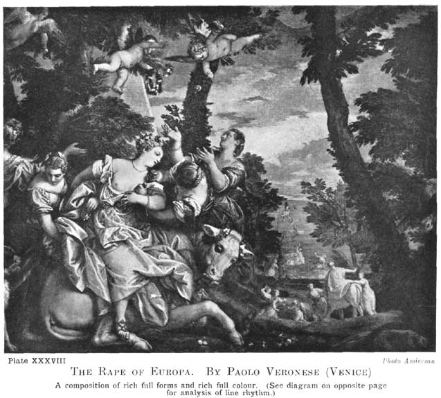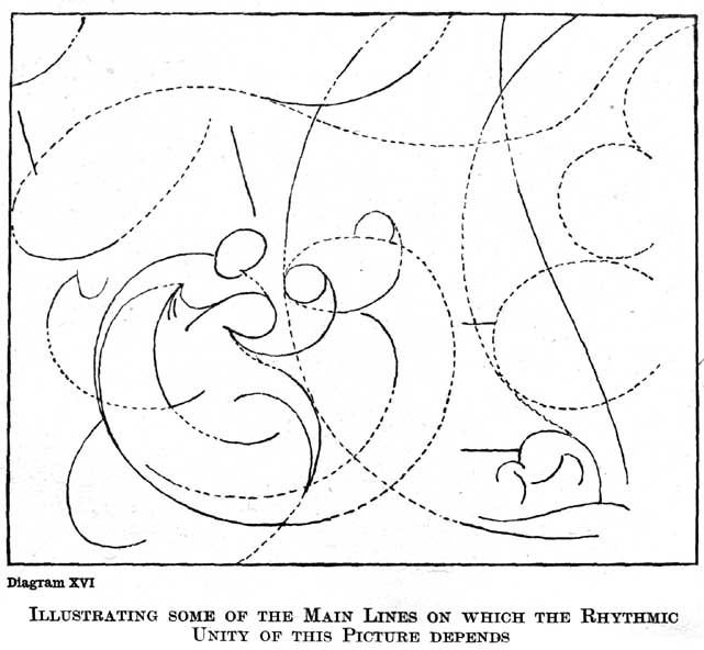 But who knows of words that can convey a just idea of such subtle matter? If one says "Art is the rhythmic expression of Life, or emotional consciousness, or feeling," all are inadequate. Perhaps the "rhythmic expression of life" would be the more perfect definition. But the word "life" is so much more associated with eating and drinking in the popular mind, than with the spirit or force or whatever you care to call it, that exists behind consciousness 27 and is the animating factor of our whole being, that it will hardly serve a useful purpose. So that, perhaps, for a rough, practical definition that will at least point away from the mechanical performances that so often pass for art, "the Rhythmic expression of Feeling" will do: for by Rhythm is meant that ordering of the materials of art (form and colour, in the case of painting) so as to bring them into relationship with our innate sense of harmony which gives them their expressive power. Without this relationship we have no direct means of making the sensuous material of art awaken an answering echo in others. The boy shouting at the top of his voice, making a horrible noise, was not an artist because his expression was inadequate—was not related to the underlying sense of harmony that would have given it expressive power.