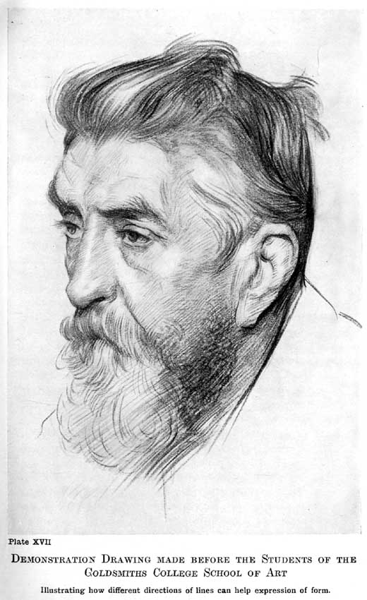 These academic drawings, too, should be as highly finished as hard application can make them, so that the habit of minute visual expression may be acquired. It will be needed later, when drawing of a finer kind is attempted, and when in the heat of an emotional stimulus the artist has no time to consider the smaller subtleties of drawing, which by then should have become almost instinctive with him, leaving his mind free to dwell on the bigger qualities.