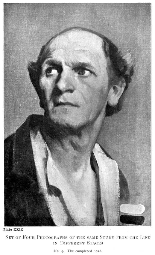 Art probably owes more to form for its range of expression than to colour. Many of the noblest things it is capable of conveying are expressed by form more directly than by anything else. And it is interesting to notice how some of the world's greatest artists have been very restricted in their use of colour, preferring to depend on form for their chief appeal. It is reported that Apelles only used three colours, black, red, and yellow, and Rembrandt used little else. Drawing, although the first, is also the last, thing the painter usually studies. There is more in it that can be taught and that repays constant application and effort. Colour would seem to depend much more on a natural sense and to be less amenable to teaching. A well-trained eye for the appreciation of form is what every student should set himself to acquire with all the might of which he is capable.