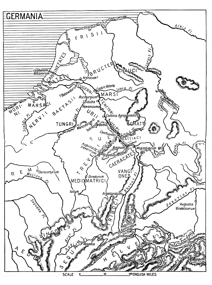 554 Tacitus remarks in the Germania (chap. 29) that the Batavi do not suffer the indignity of paying tribute, but, 'like armour and weapons are reserved for use in war.'