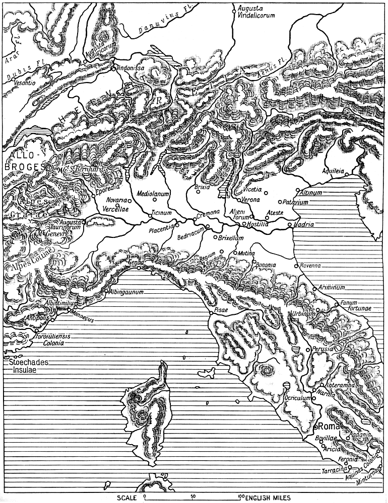 | Antonius Primus with Arrius Varus hurries forward into Italy. | ||