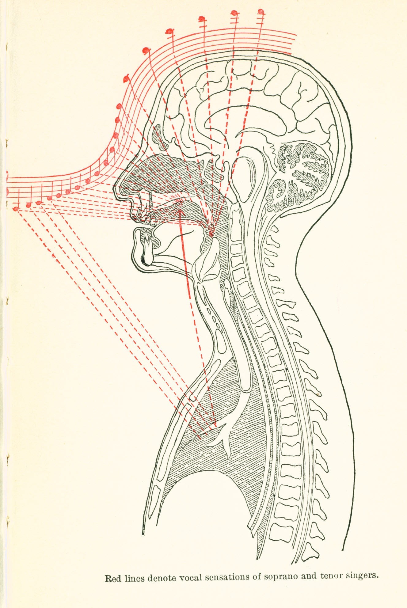 To me it is always as if the pitch of the highest tone were already contained in the lowest, so strongly concentrated upon the whole figure are my thoughts at the attack of a single tone. By means of ah-e-ā, larynx, tongue, and palatal position on the lowest tone are in such a position that the vibrations of breath for the highest tones are already finding admission into the head cavities, and as far as possible are in sympathetic vibration there.