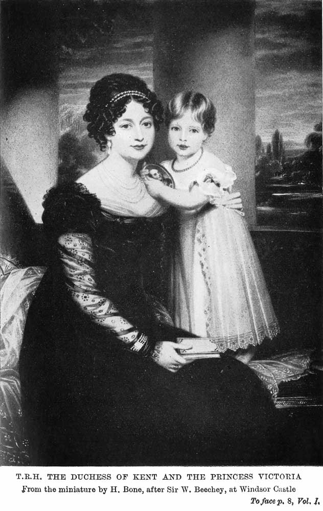 The Duchess of Kent (1786-1861), Victoria Mary Louisa, was a daughter of Francis, Duke of Saxe-Coburg-Saalfeld. She [page 9] was the widow of Emich Charles, Prince of Leiningen,1 whom she had married in 1803, and who had died in 1814, leaving a son and a daughter by her.