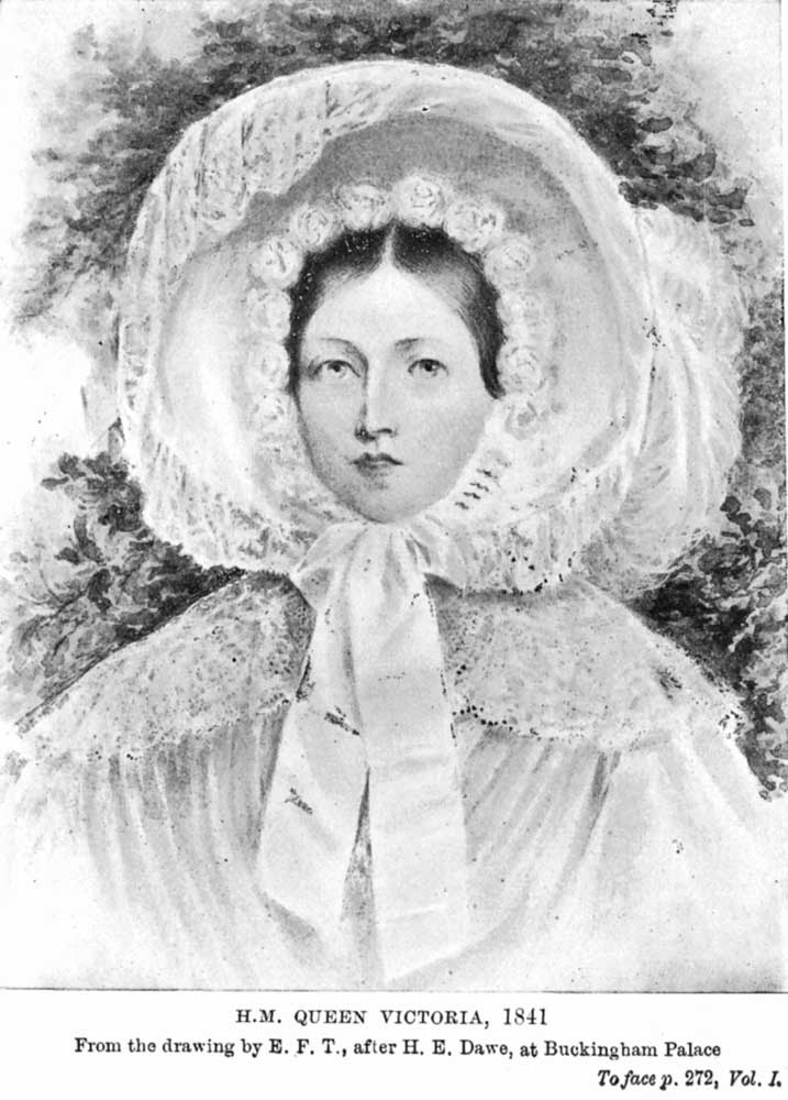 | H.M. Queen Victoria, 1841. From the drawing by E. F. T., after H. E. Dawe, at Buckingham Palace |