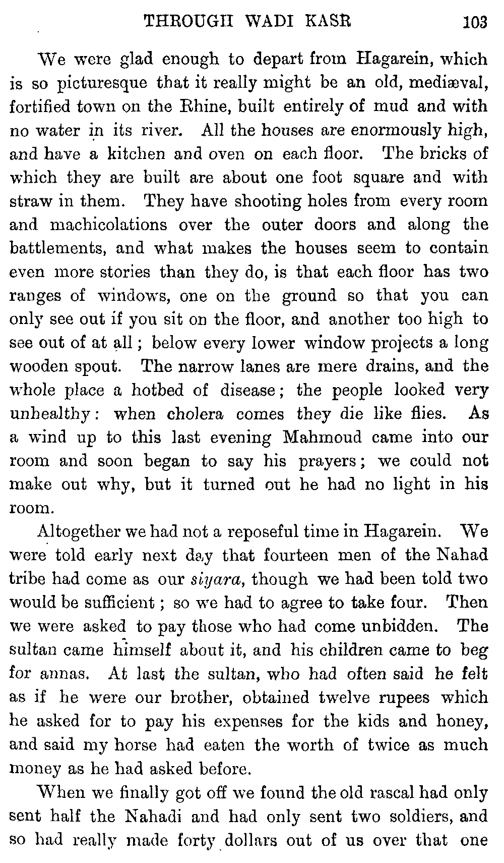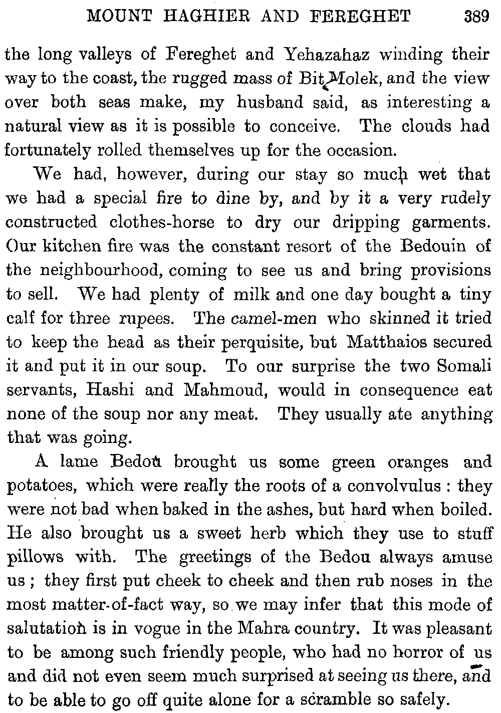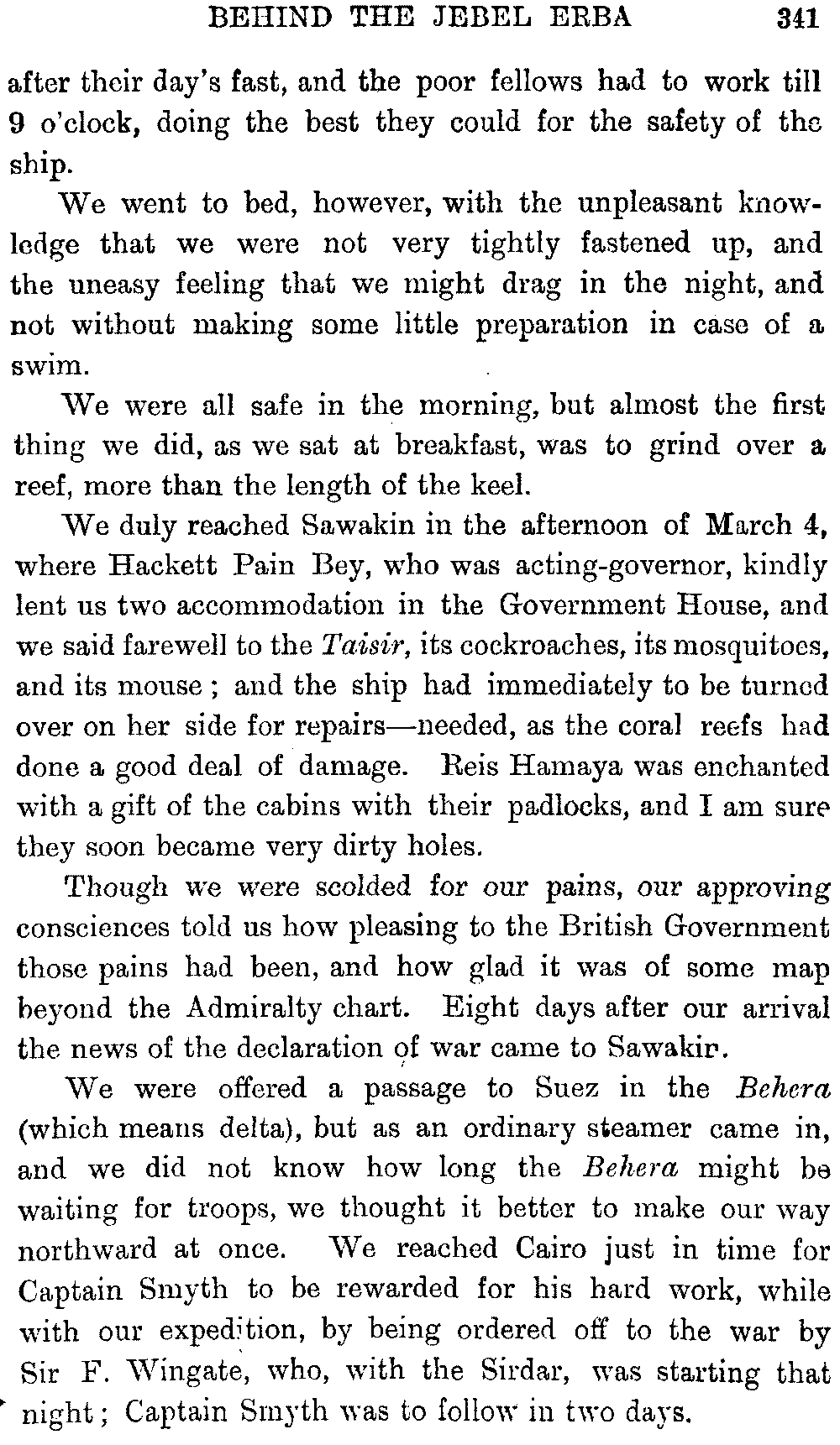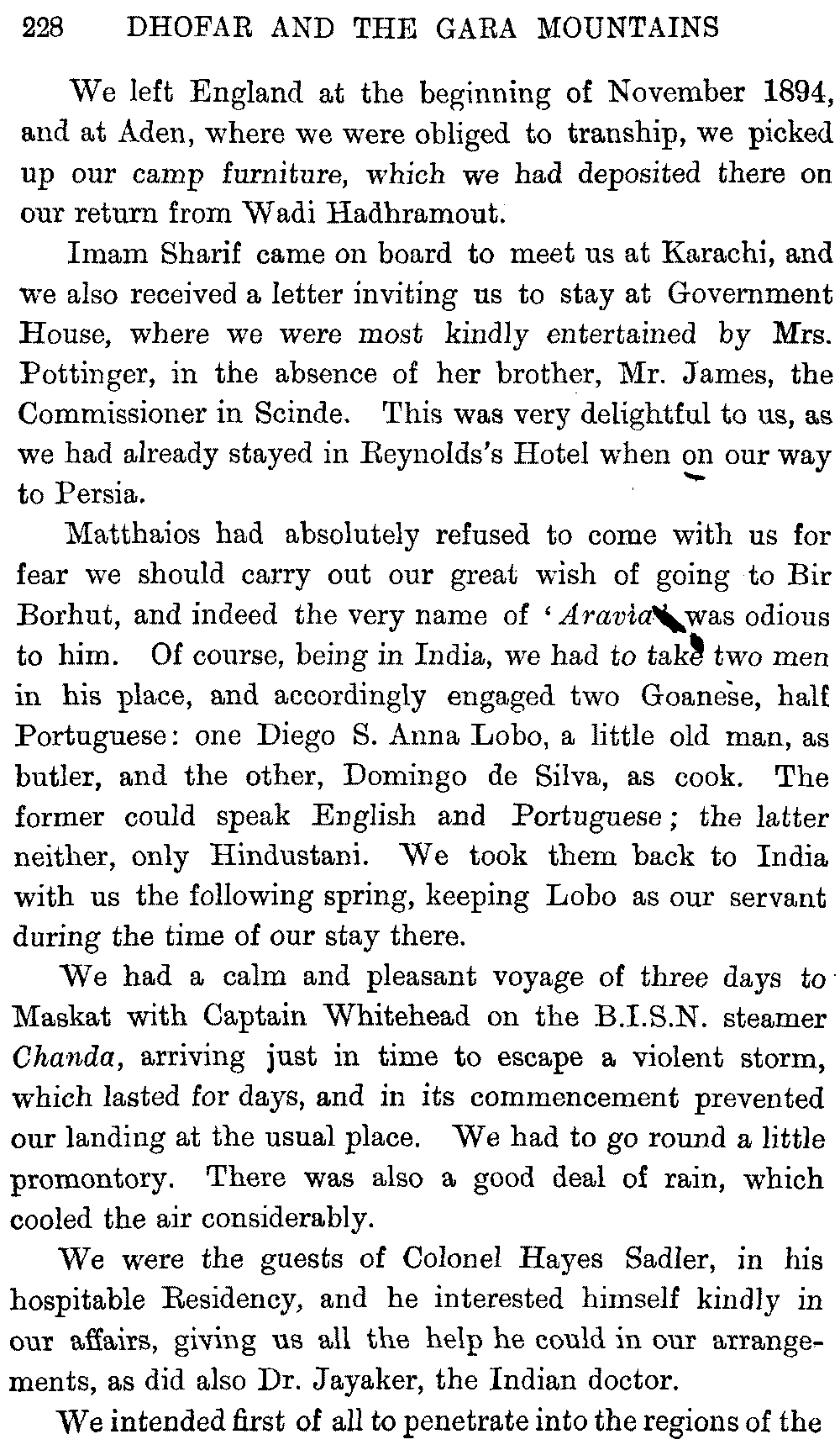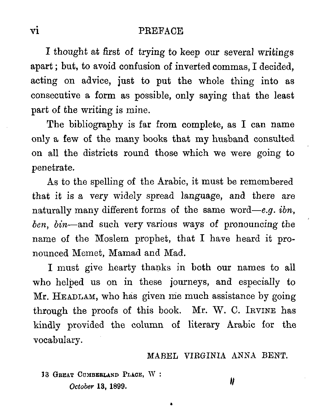 I must give hearty thanks in both our names to all who helped us on in these journeys, and especially to Mr. Headlam, who has given me much assistance by going through the proofs of this book. Mr. W. C. Irvine has kindly provided the column of literary Arabic for the vocabulary.