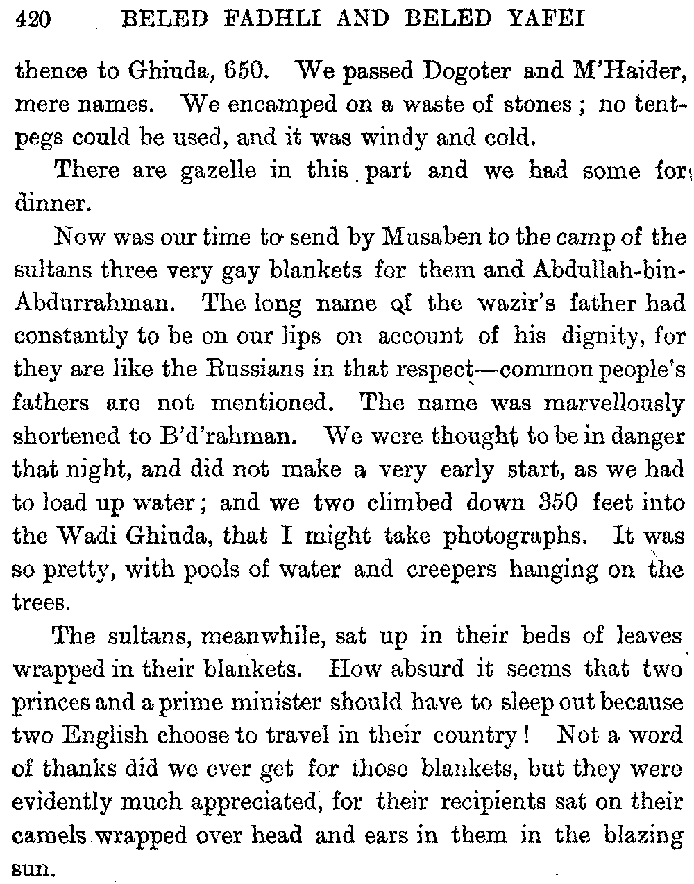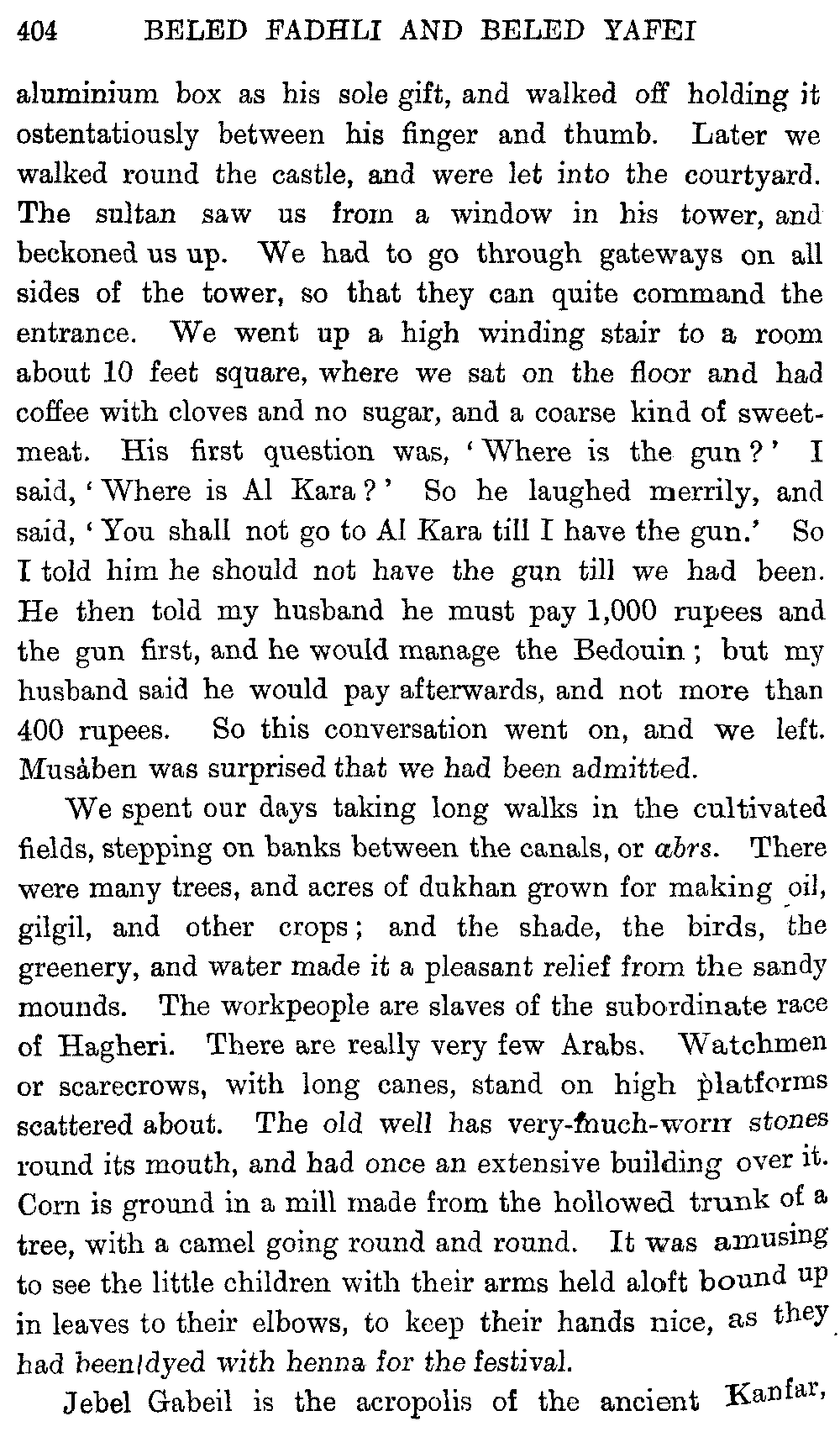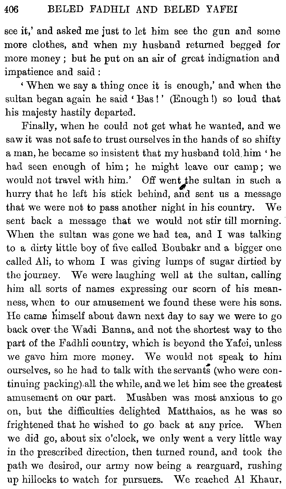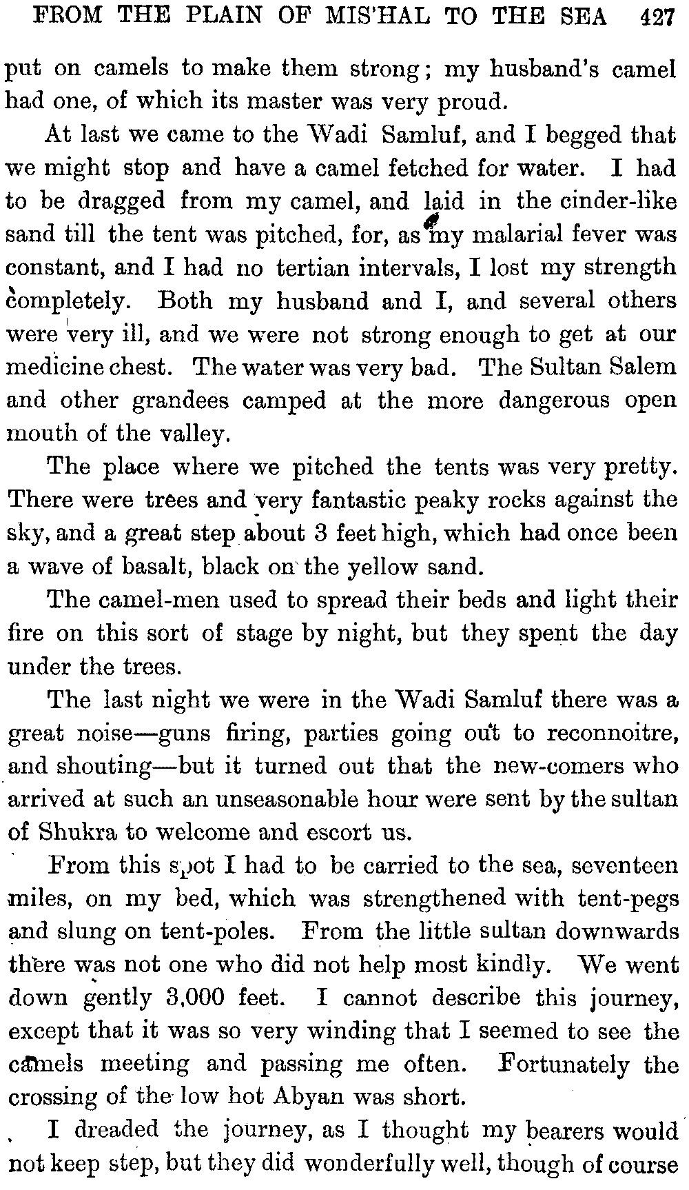 I must give hearty thanks in both our names to all who helped us on in these journeys, and especially to Mr. Headlam, who has given me much assistance by going through the proofs of this book. Mr. W. C. Irvine has kindly provided the column of literary Arabic for the vocabulary.