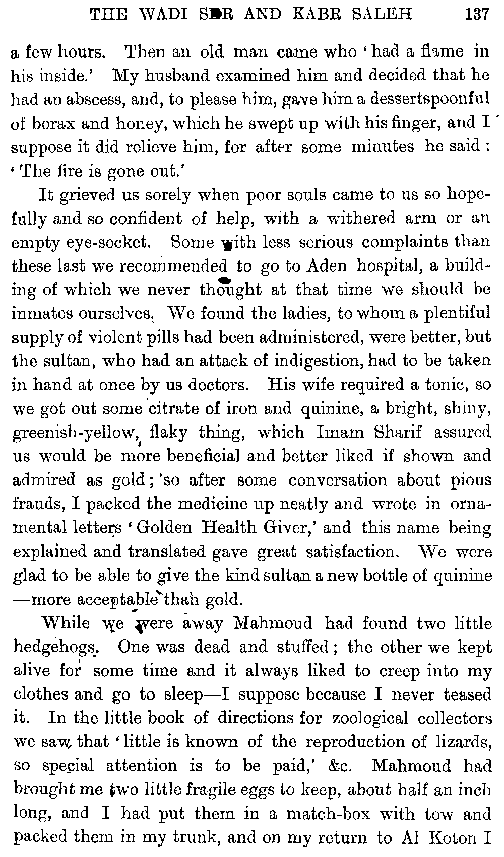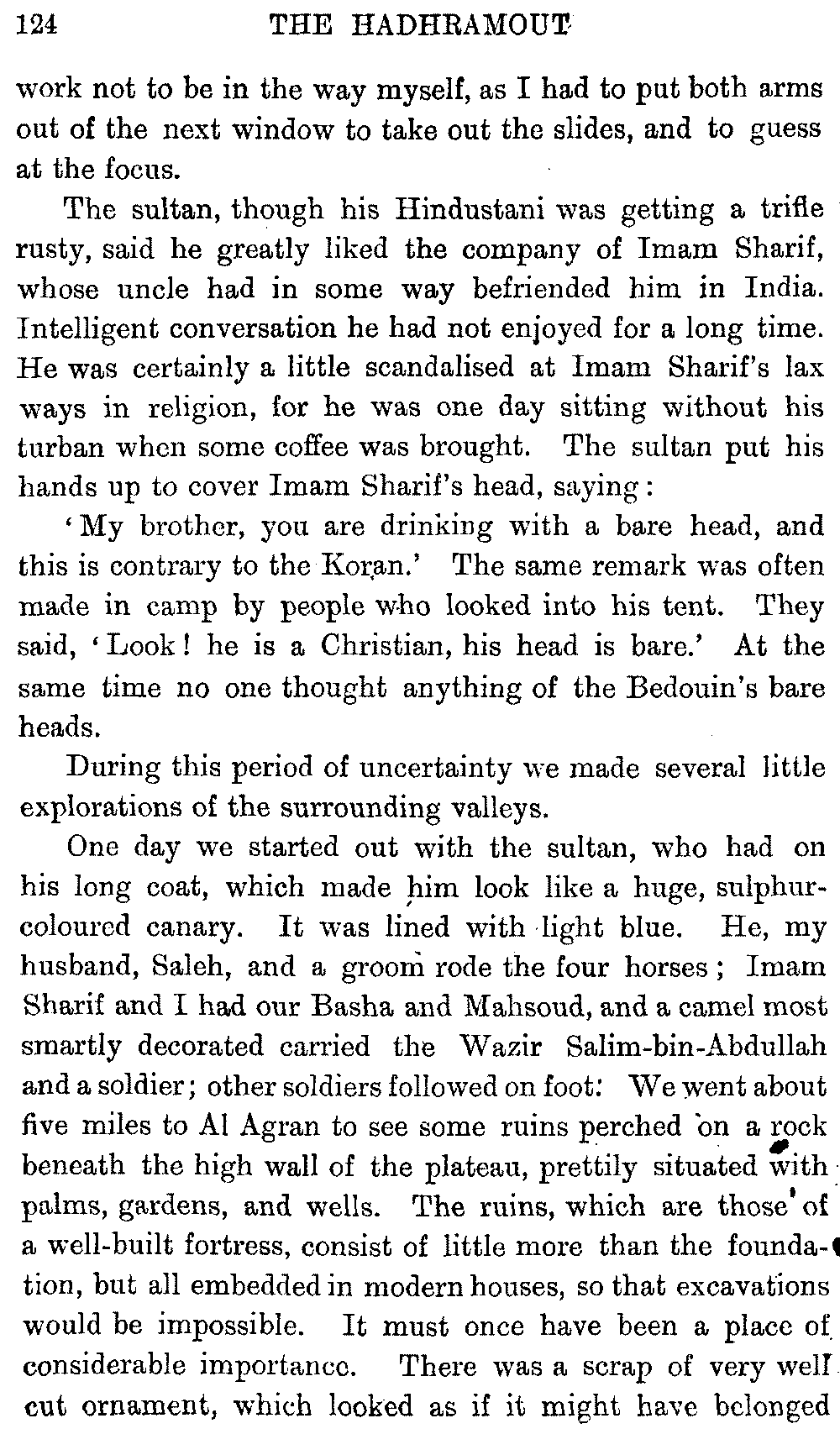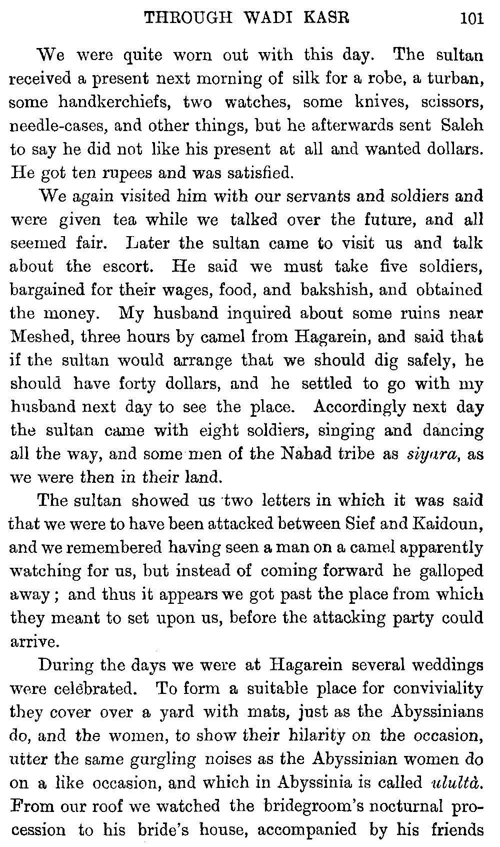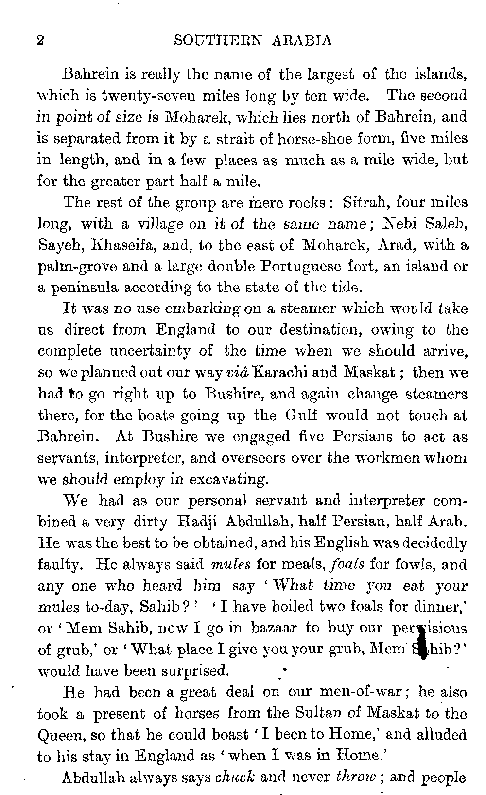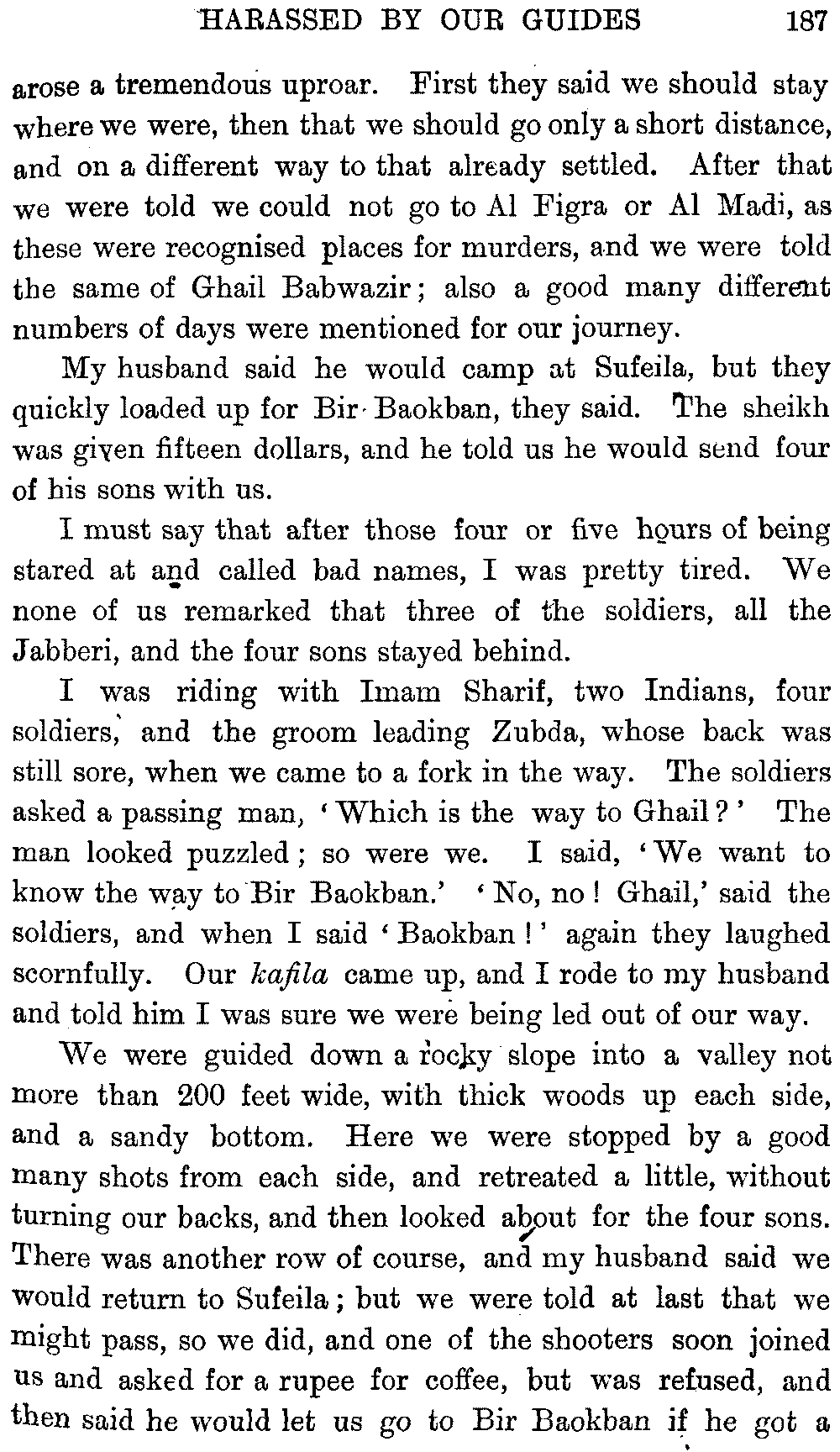 I must give hearty thanks in both our names to all who helped us on in these journeys, and especially to Mr. Headlam, who has given me much assistance by going through the proofs of this book. Mr. W. C. Irvine has kindly provided the column of literary Arabic for the vocabulary.