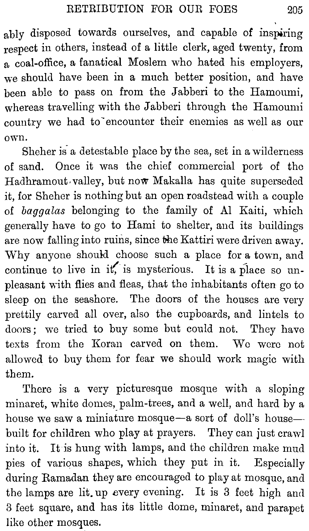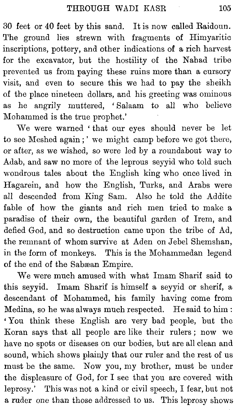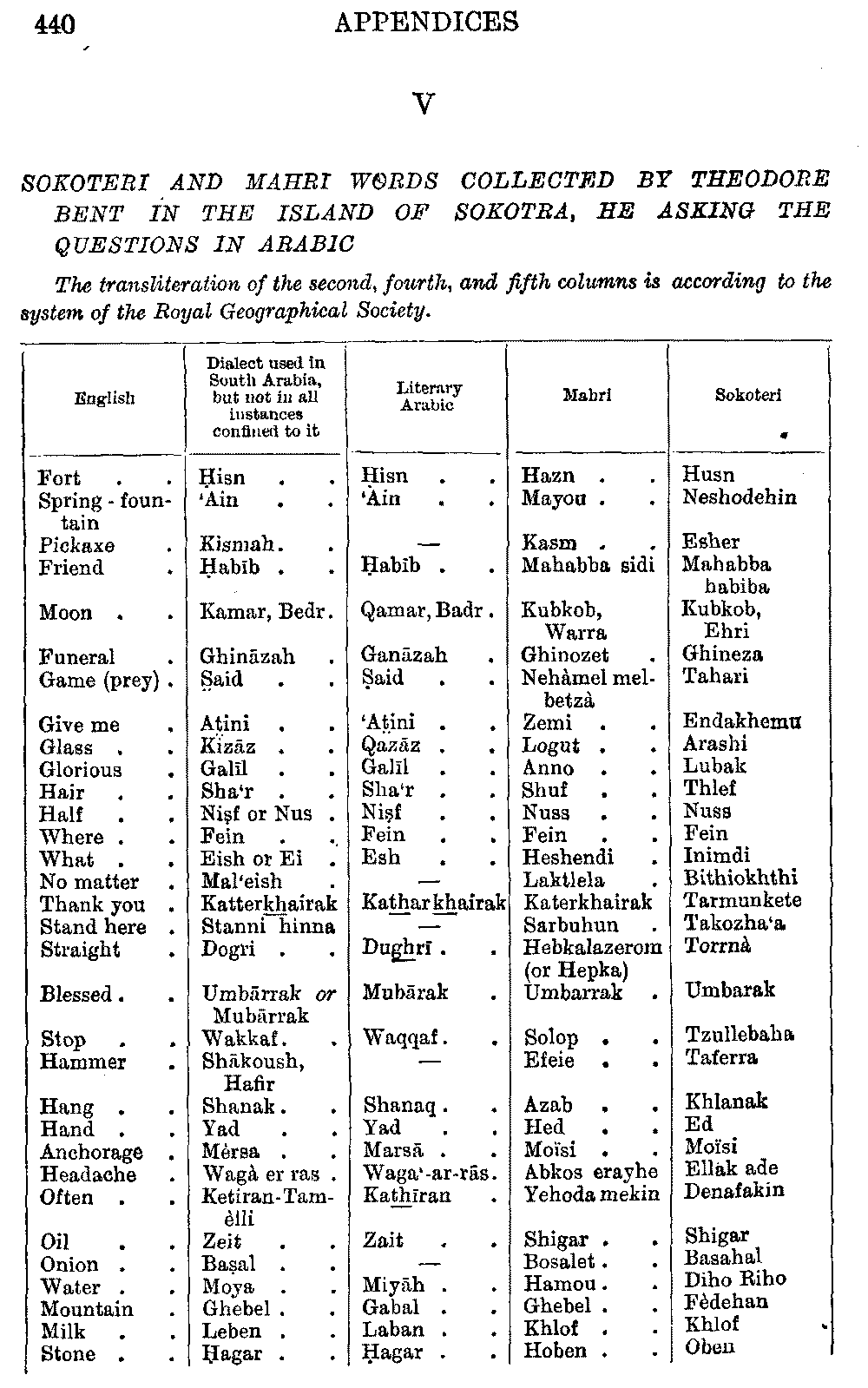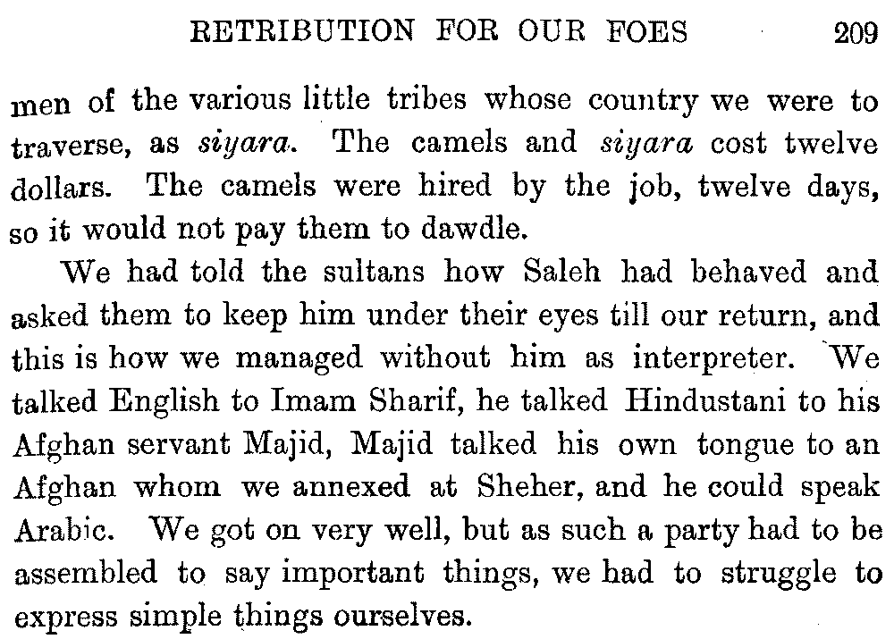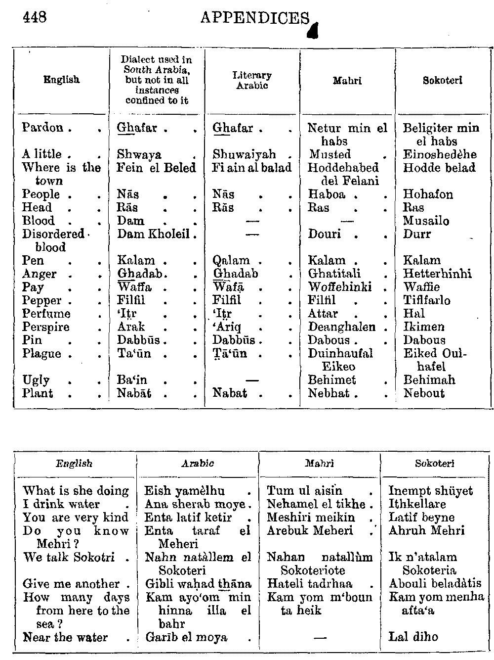 As to the spelling of the Arabic, it must be remembered that it is a very widely spread language, and there are naturally many different forms of the same word—e.g. ibn, ben, bin—and such very various ways of pronouncing the name of the Moslem prophet, that I have heard it pronounced Memet, Mamad and Mad.