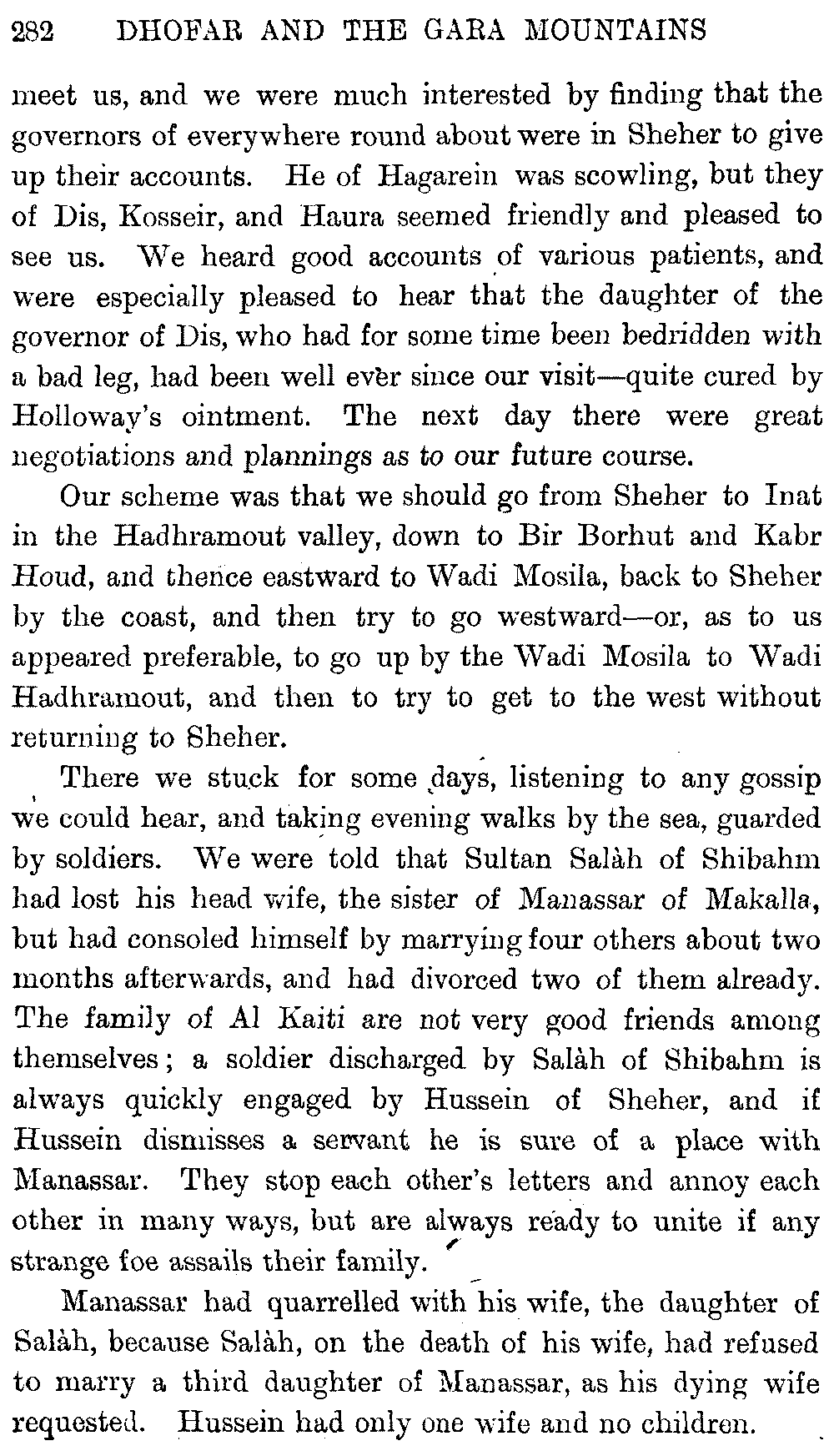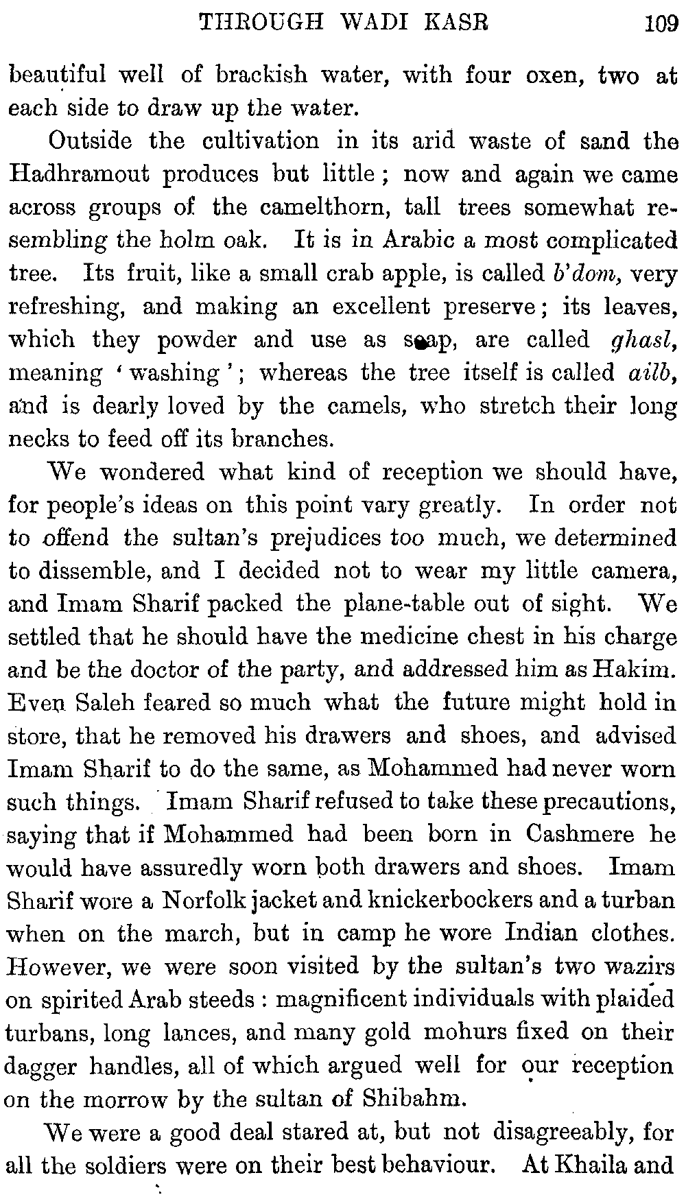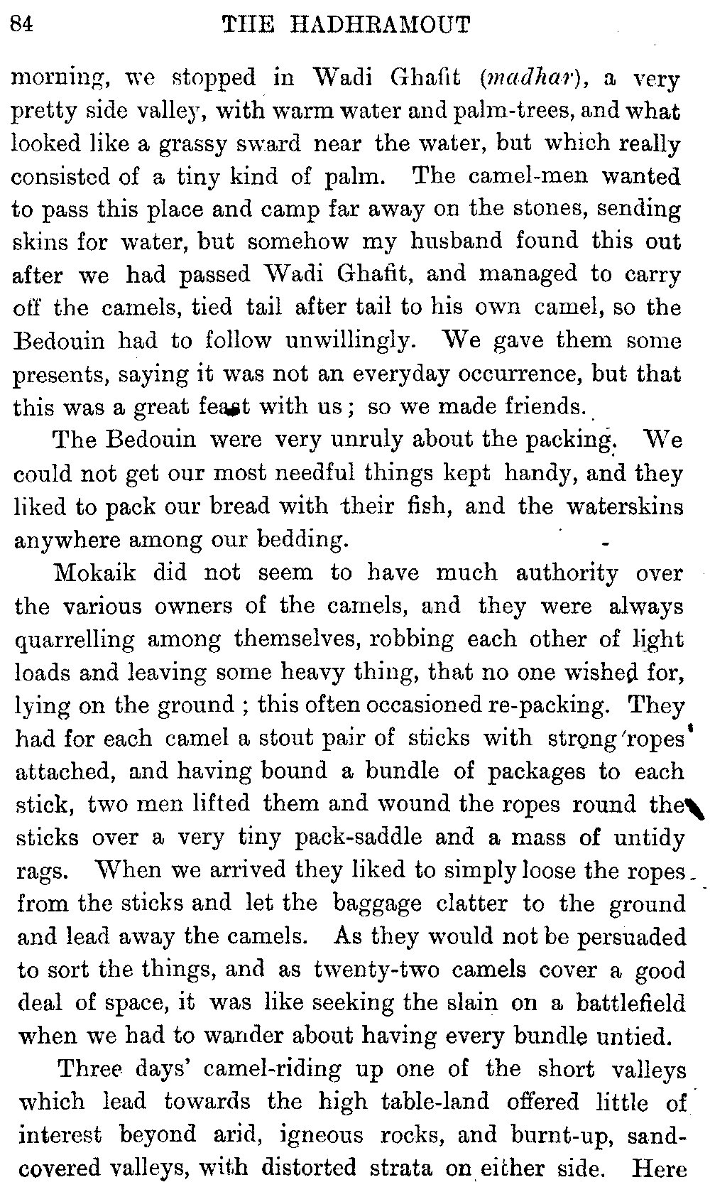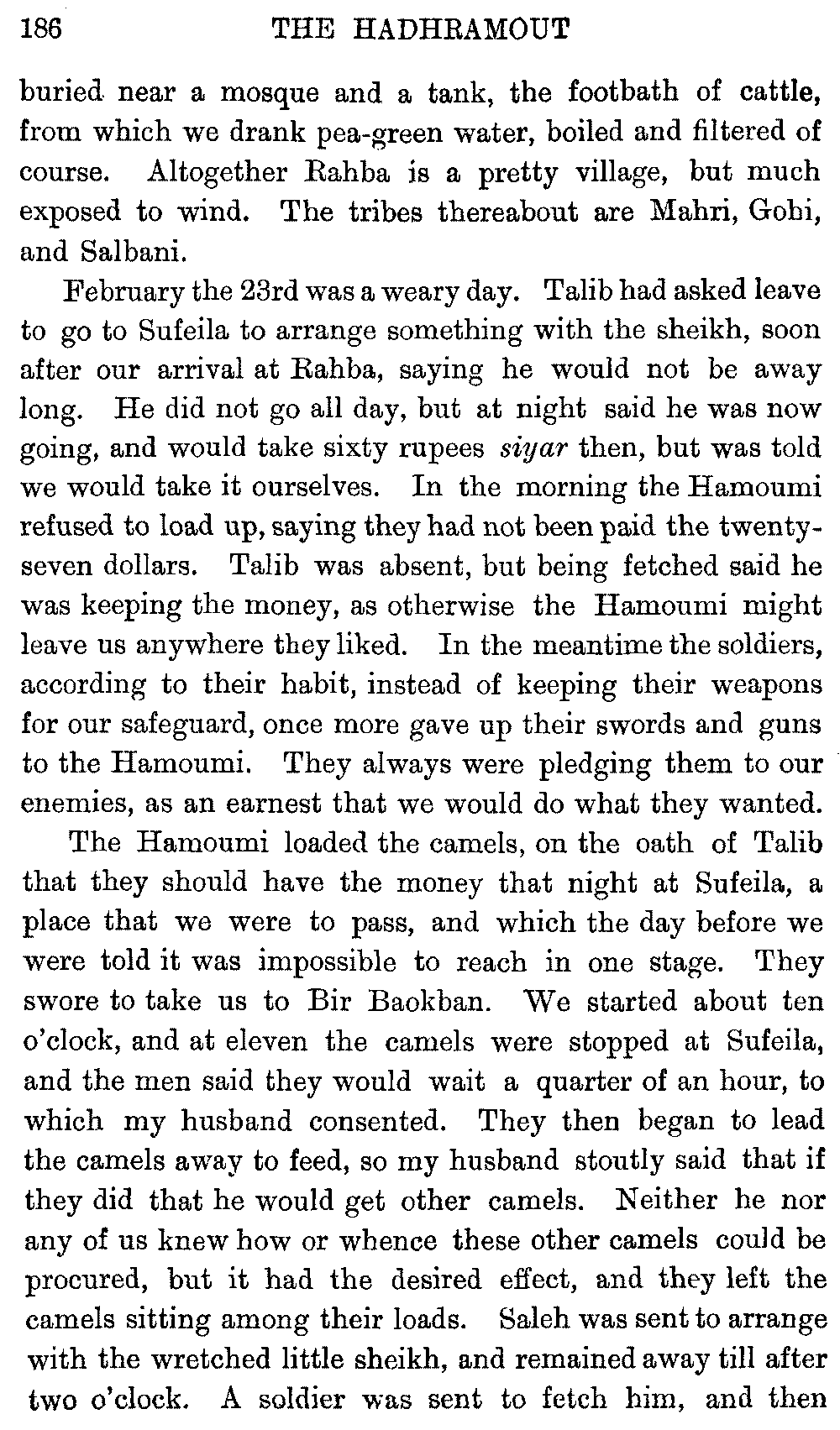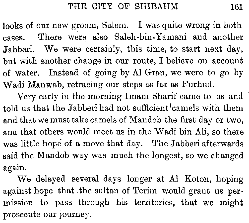 If my fellow-traveller had lived, he intended to have put together in book form such information as we had gathered about Southern Arabia. Now, as he died four days after our return from our last journey there, I have had to undertake the task myself. It has been very sad to me, but I have been helped by knowing that, however imperfect this book may be, what is written here will surely be a help to those who, by following in our footsteps, will be able to get beyond them, and to whom I so heartily wish success and a Happy Home-coming, the best wish a traveller may have. It is for their information that I have included so many things about the price of camels, the payment of soldiers and so forth, and yet even casual readers may care to know these details of explorers' daily lives.