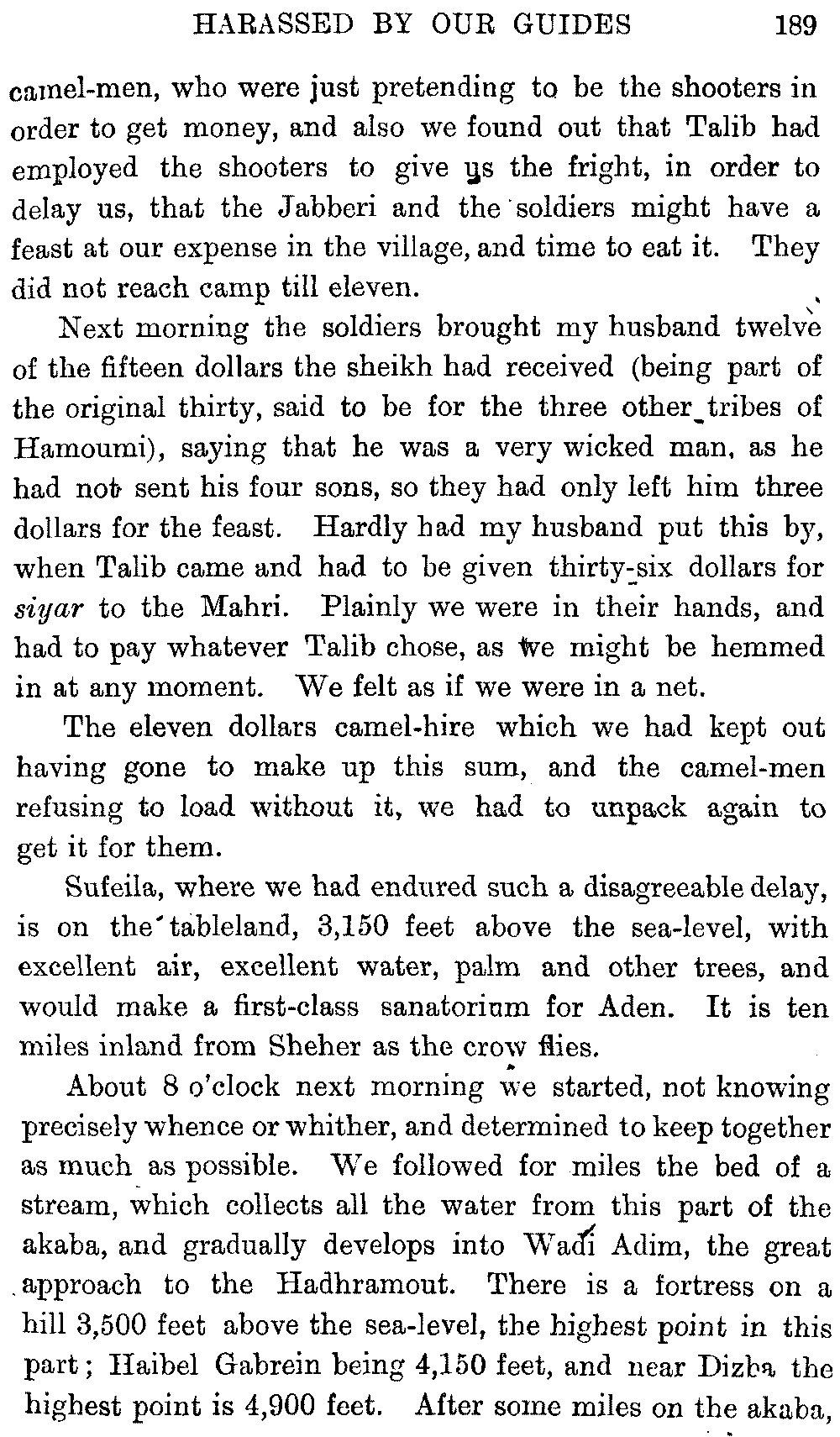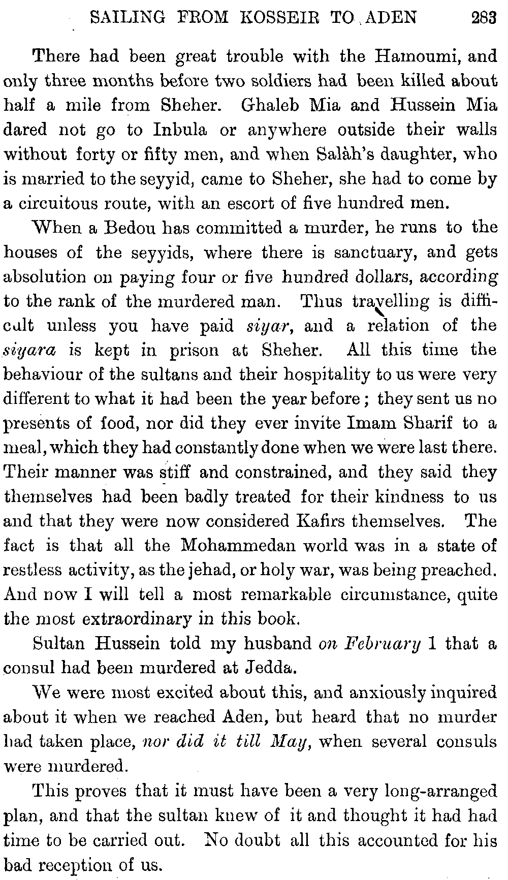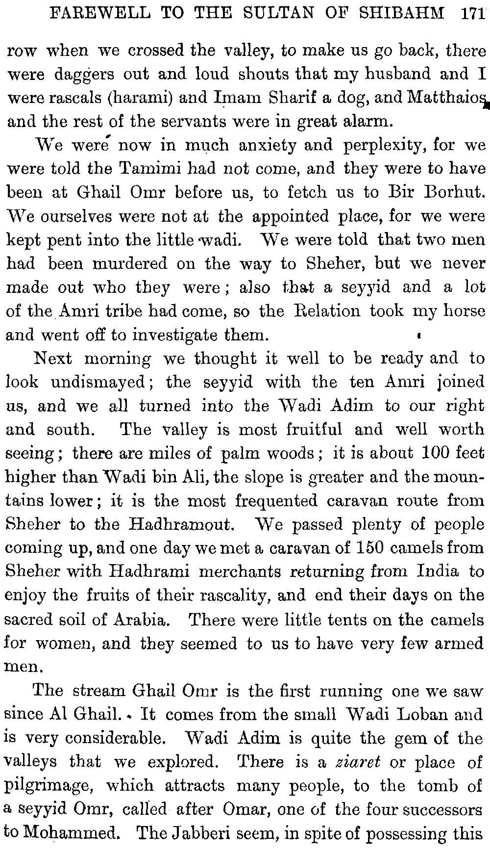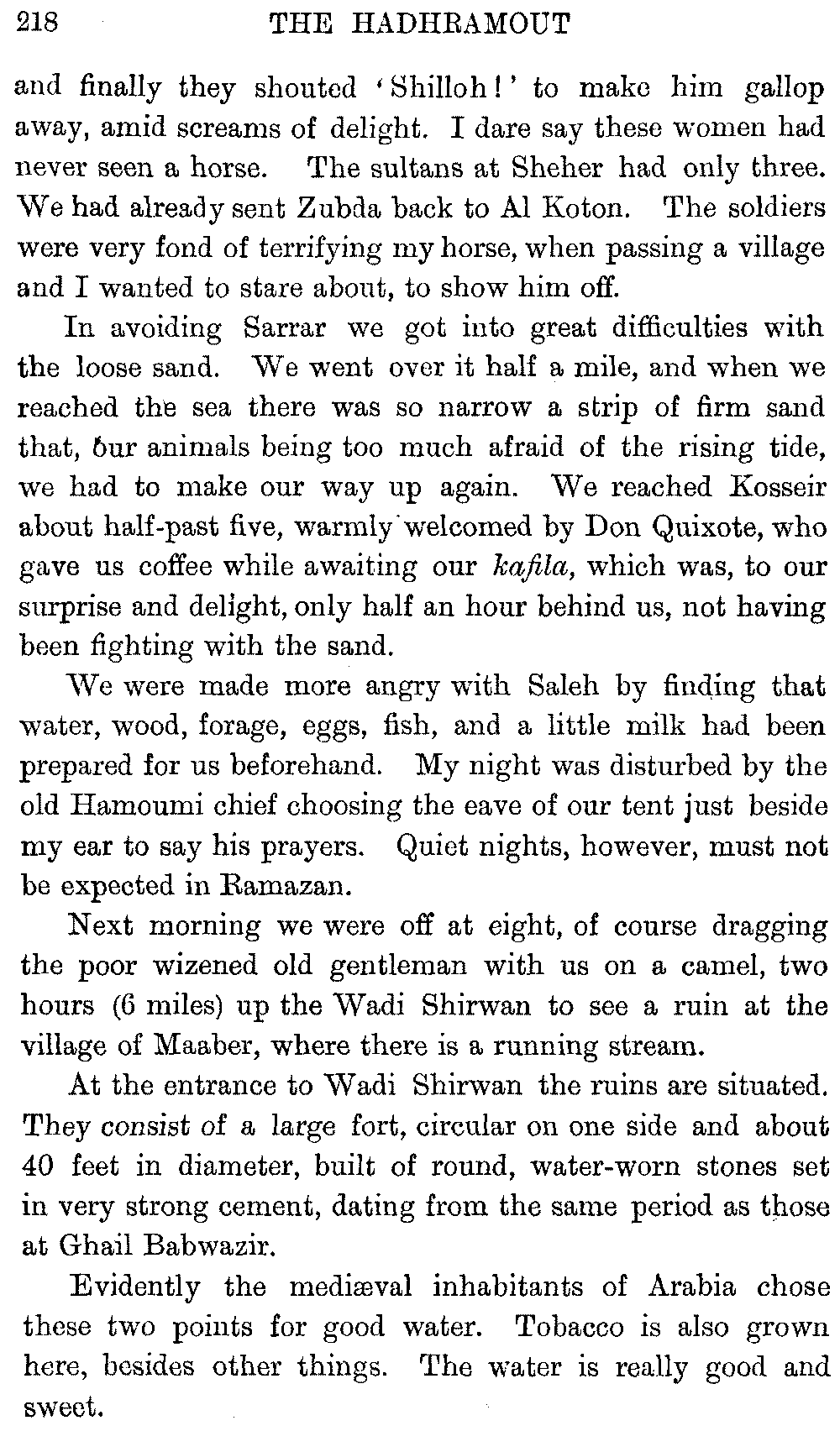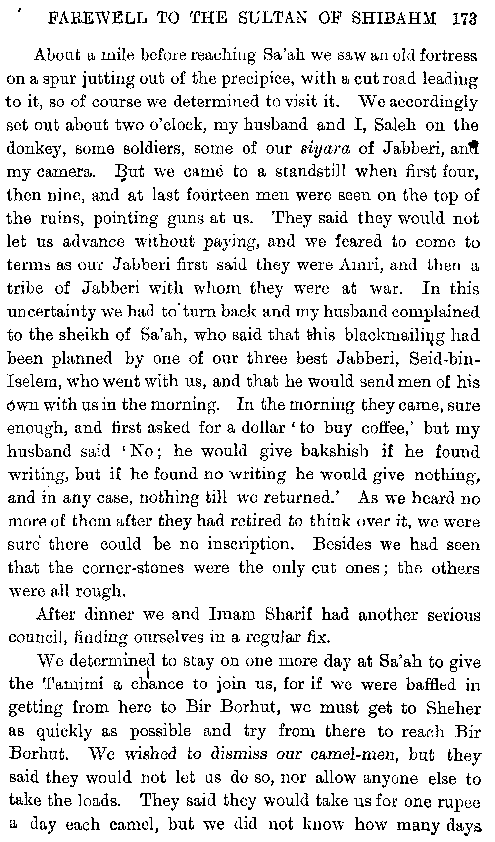 If my fellow-traveller had lived, he intended to have put together in book form such information as we had gathered about Southern Arabia. Now, as he died four days after our return from our last journey there, I have had to undertake the task myself. It has been very sad to me, but I have been helped by knowing that, however imperfect this book may be, what is written here will surely be a help to those who, by following in our footsteps, will be able to get beyond them, and to whom I so heartily wish success and a Happy Home-coming, the best wish a traveller may have. It is for their information that I have included so many things about the price of camels, the payment of soldiers and so forth, and yet even casual readers may care to know these details of explorers' daily lives.