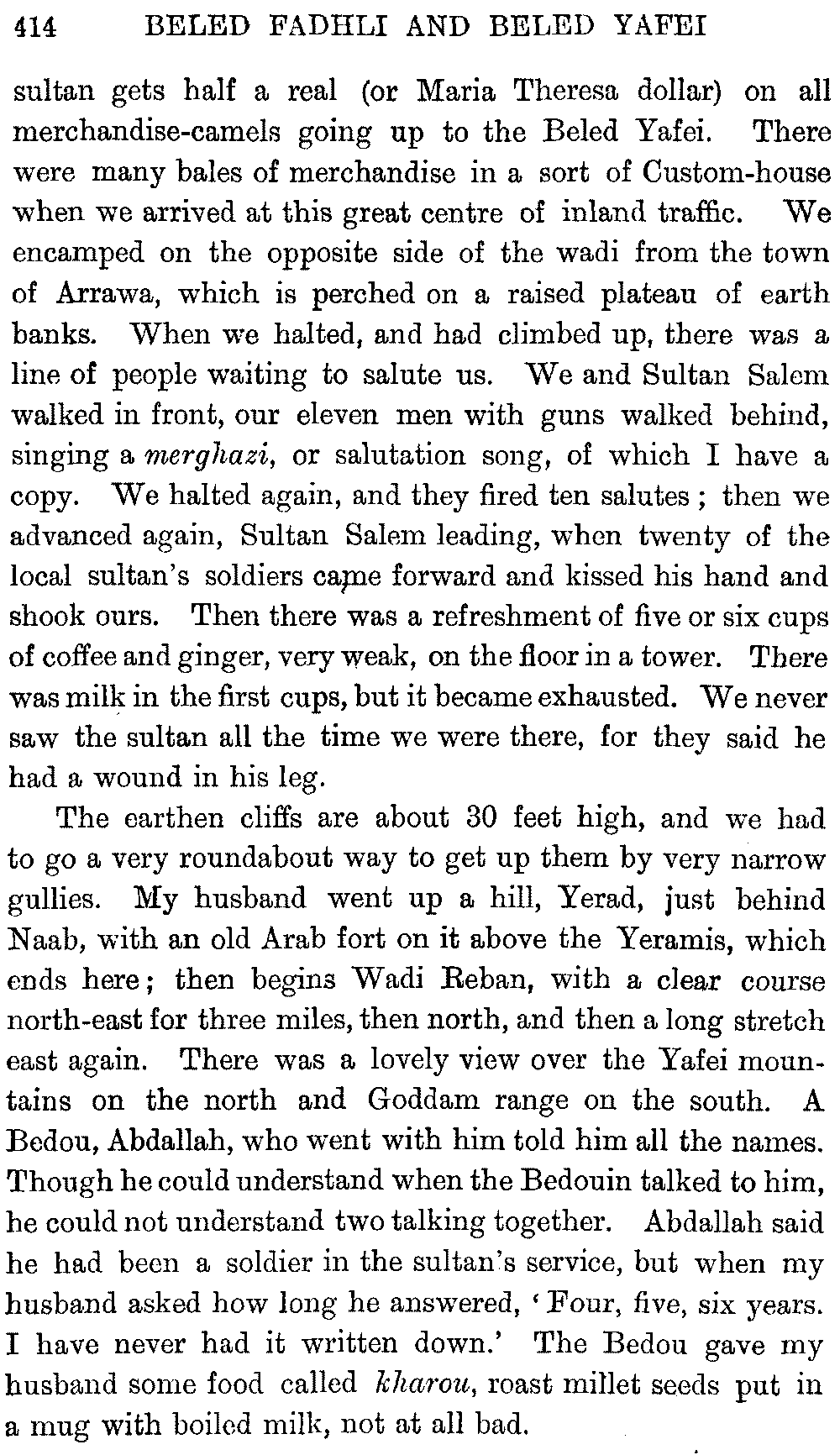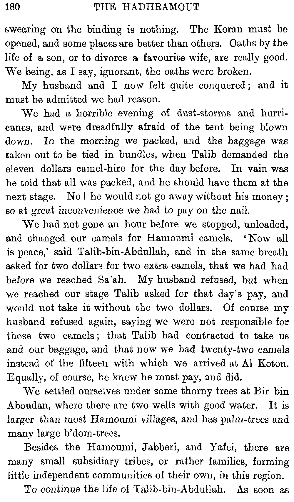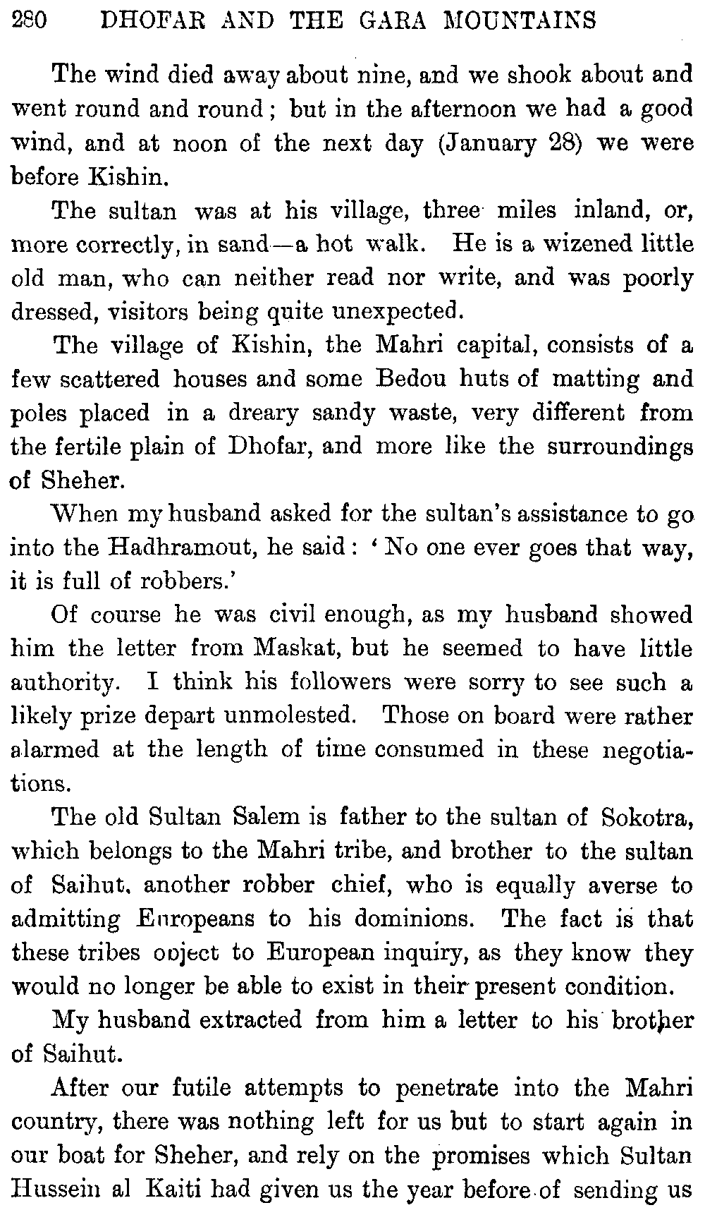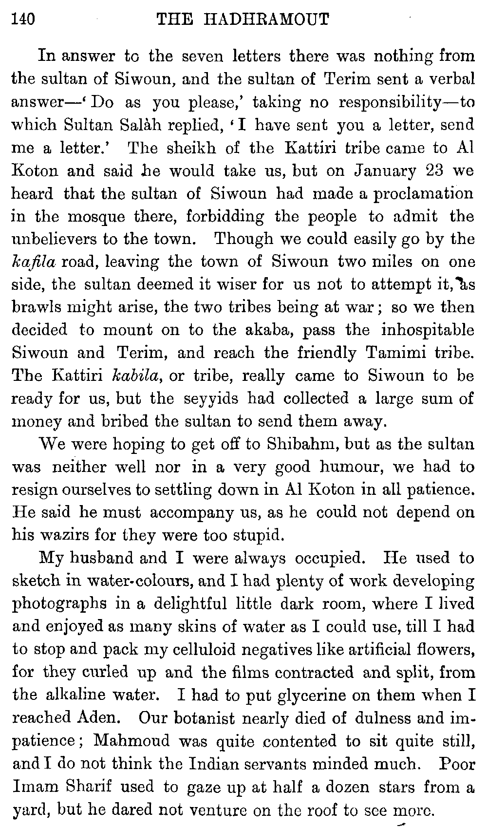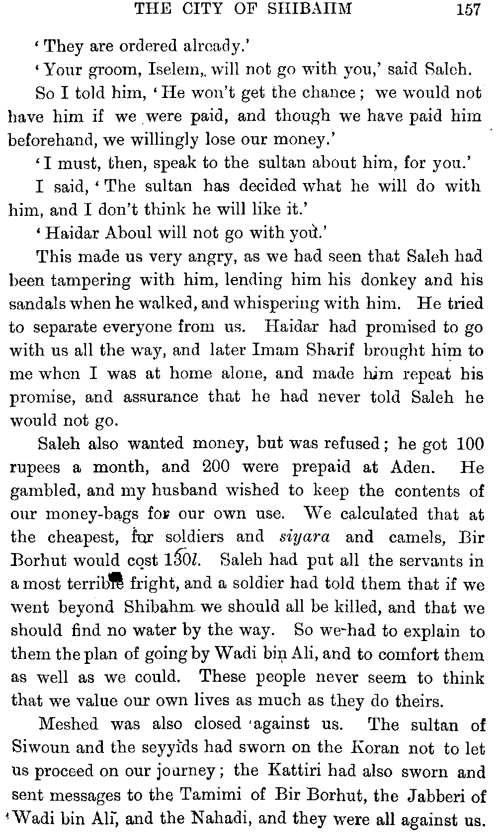 If my fellow-traveller had lived, he intended to have put together in book form such information as we had gathered about Southern Arabia. Now, as he died four days after our return from our last journey there, I have had to undertake the task myself. It has been very sad to me, but I have been helped by knowing that, however imperfect this book may be, what is written here will surely be a help to those who, by following in our footsteps, will be able to get beyond them, and to whom I so heartily wish success and a Happy Home-coming, the best wish a traveller may have. It is for their information that I have included so many things about the price of camels, the payment of soldiers and so forth, and yet even casual readers may care to know these details of explorers' daily lives.