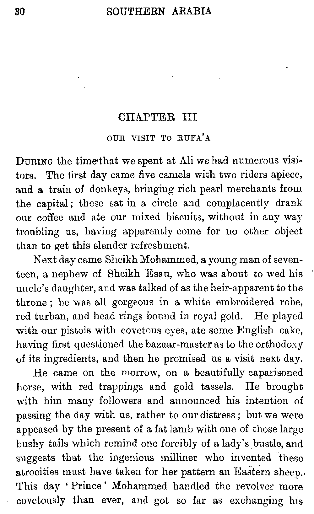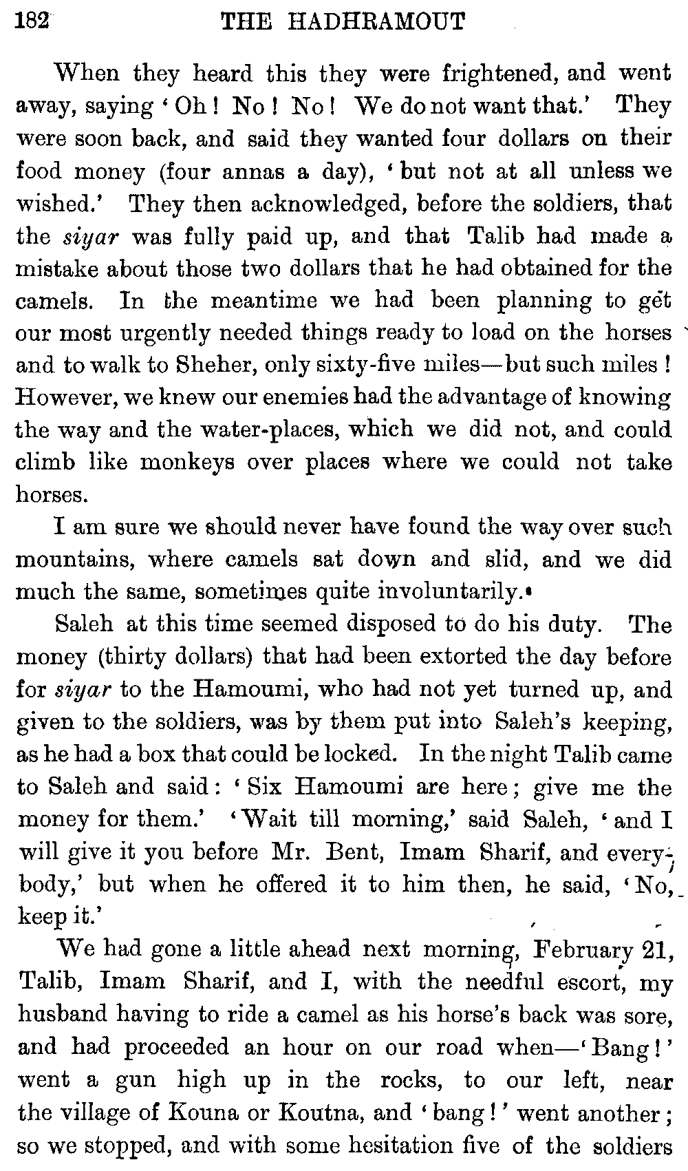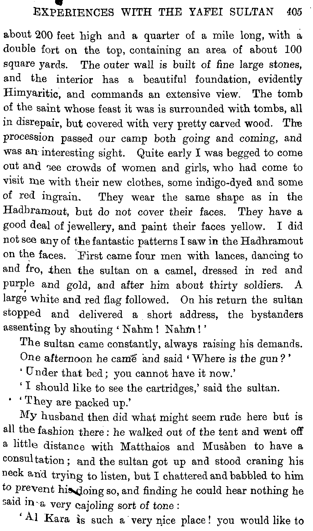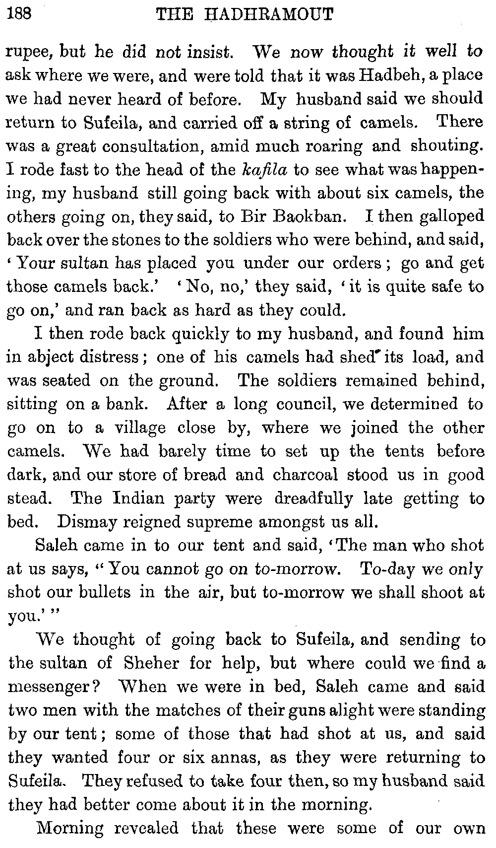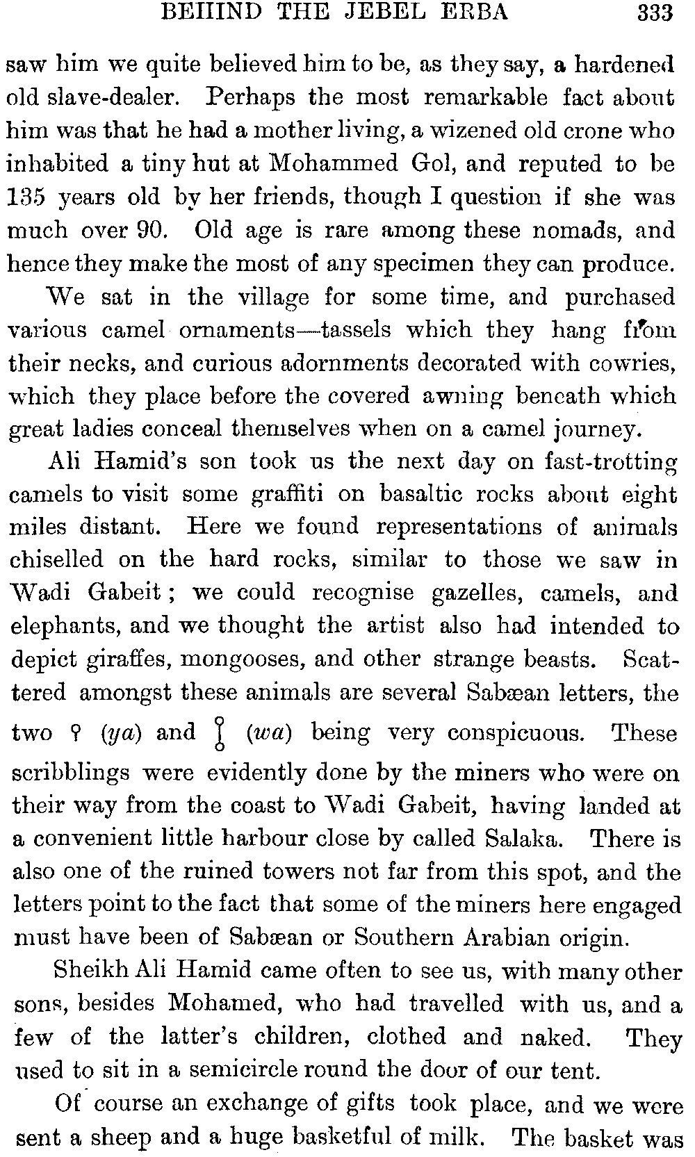 If my fellow-traveller had lived, he intended to have put together in book form such information as we had gathered about Southern Arabia. Now, as he died four days after our return from our last journey there, I have had to undertake the task myself. It has been very sad to me, but I have been helped by knowing that, however imperfect this book may be, what is written here will surely be a help to those who, by following in our footsteps, will be able to get beyond them, and to whom I so heartily wish success and a Happy Home-coming, the best wish a traveller may have. It is for their information that I have included so many things about the price of camels, the payment of soldiers and so forth, and yet even casual readers may care to know these details of explorers' daily lives.