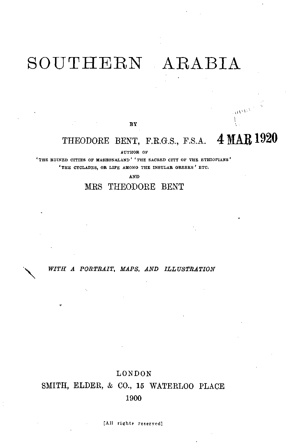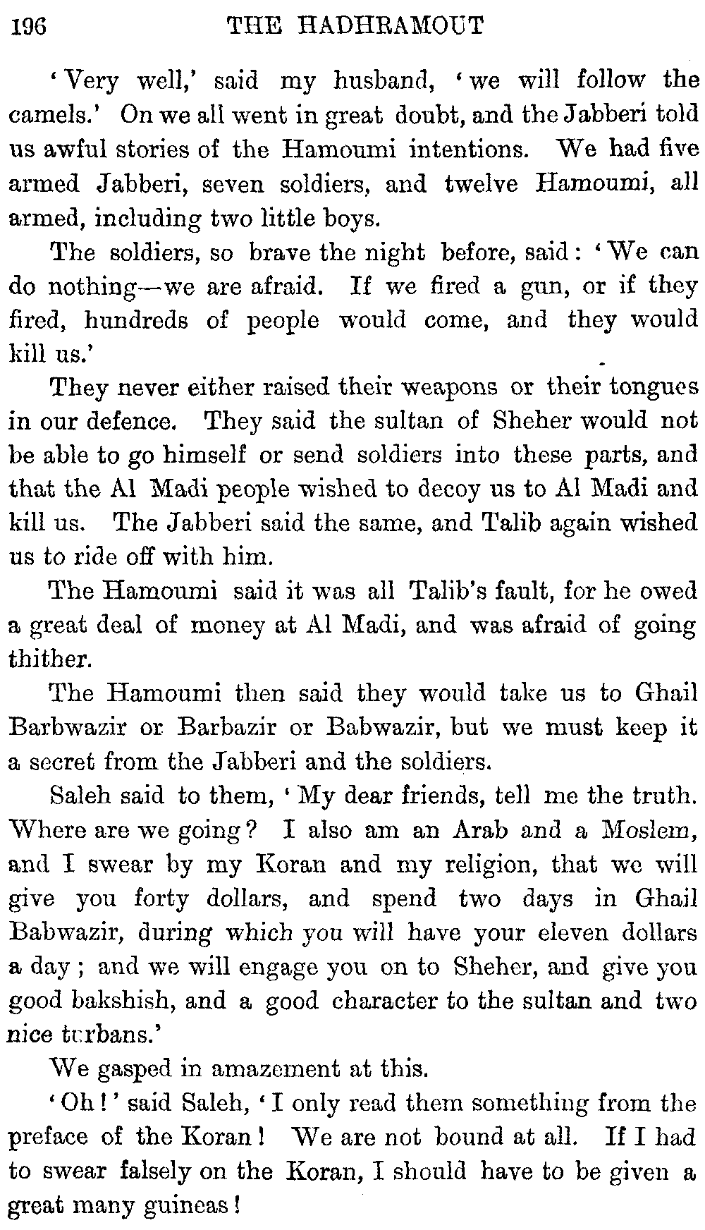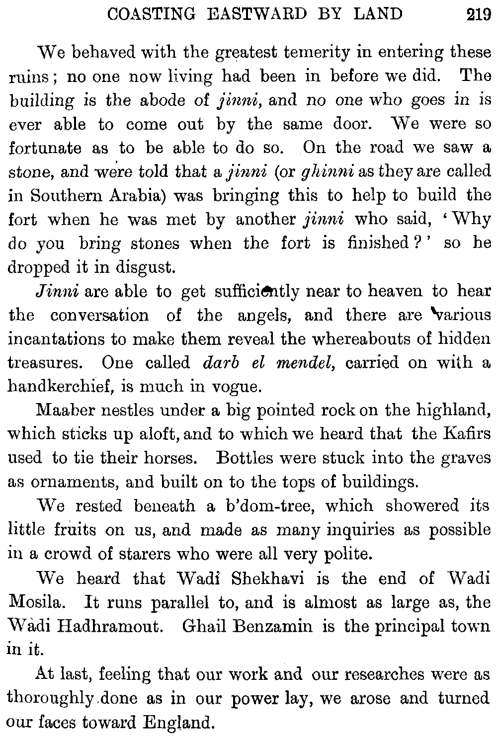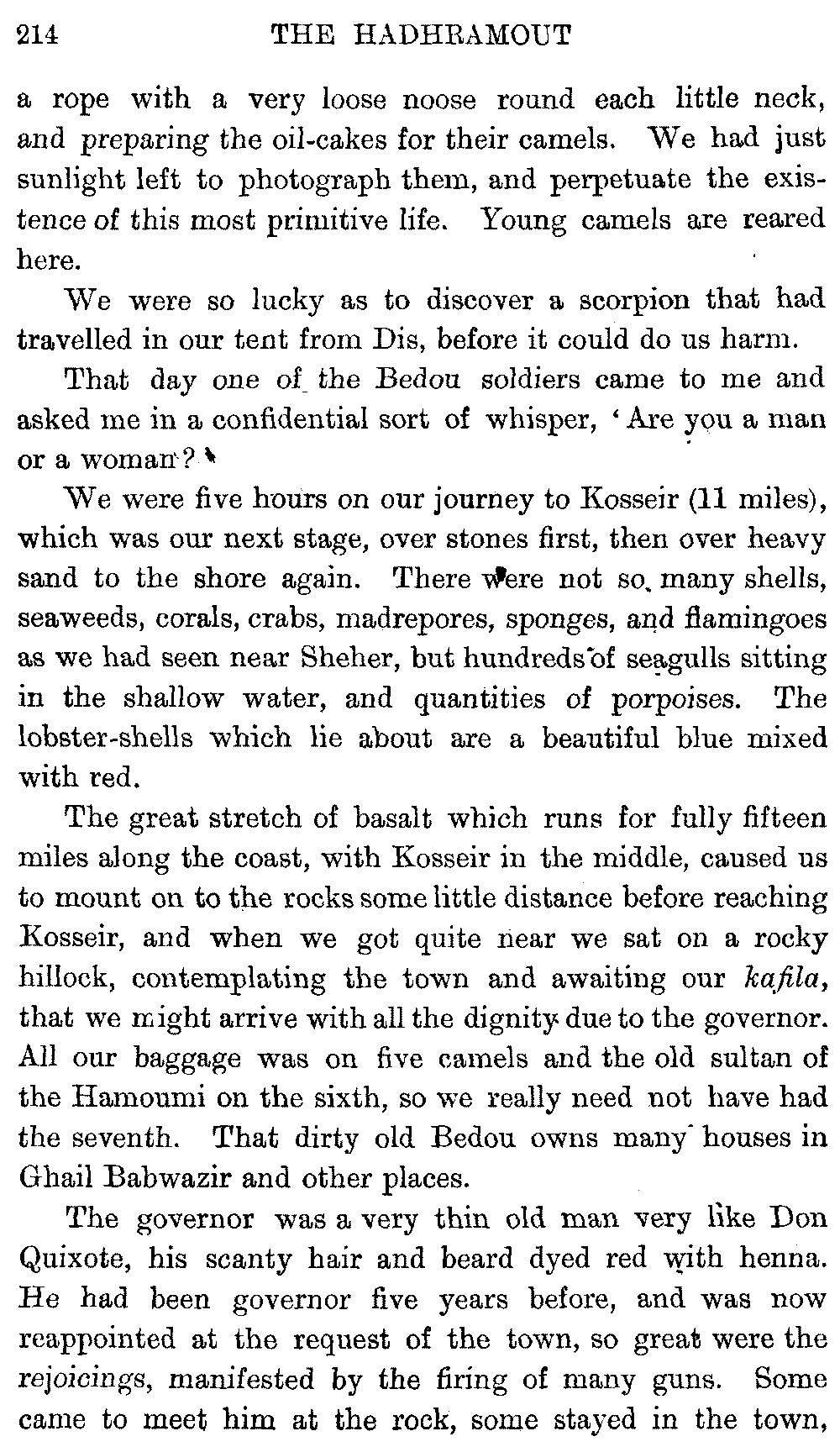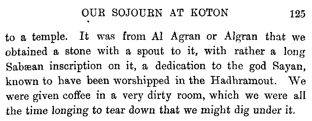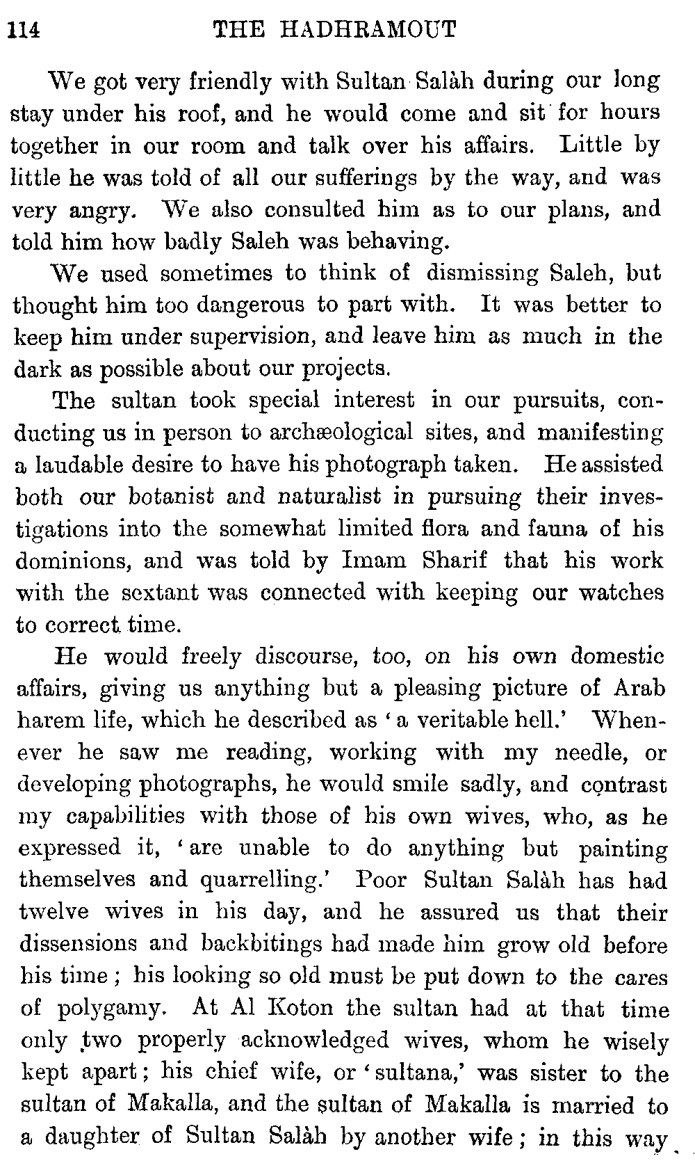 If my fellow-traveller had lived, he intended to have put together in book form such information as we had gathered about Southern Arabia. Now, as he died four days after our return from our last journey there, I have had to undertake the task myself. It has been very sad to me, but I have been helped by knowing that, however imperfect this book may be, what is written here will surely be a help to those who, by following in our footsteps, will be able to get beyond them, and to whom I so heartily wish success and a Happy Home-coming, the best wish a traveller may have. It is for their information that I have included so many things about the price of camels, the payment of soldiers and so forth, and yet even casual readers may care to know these details of explorers' daily lives.