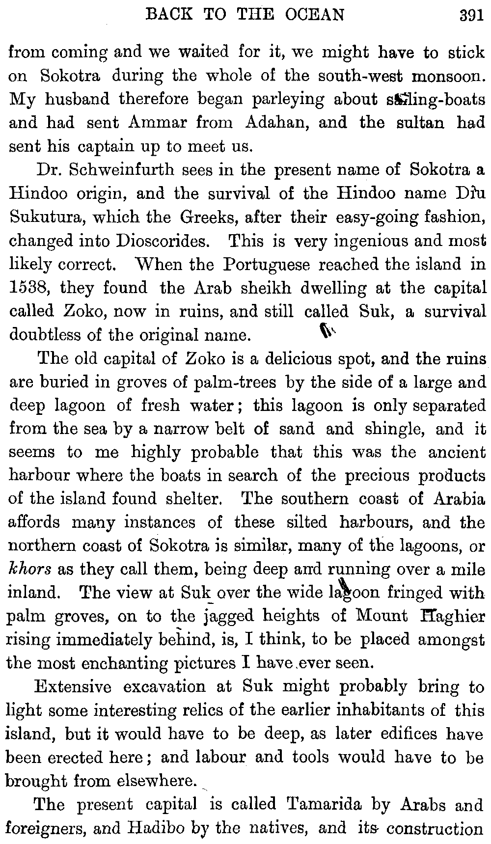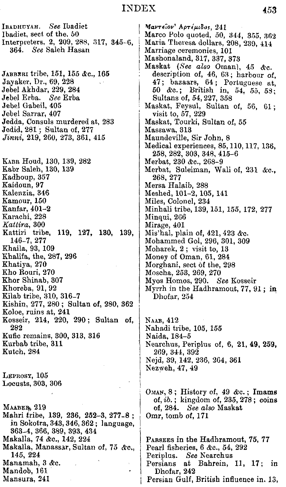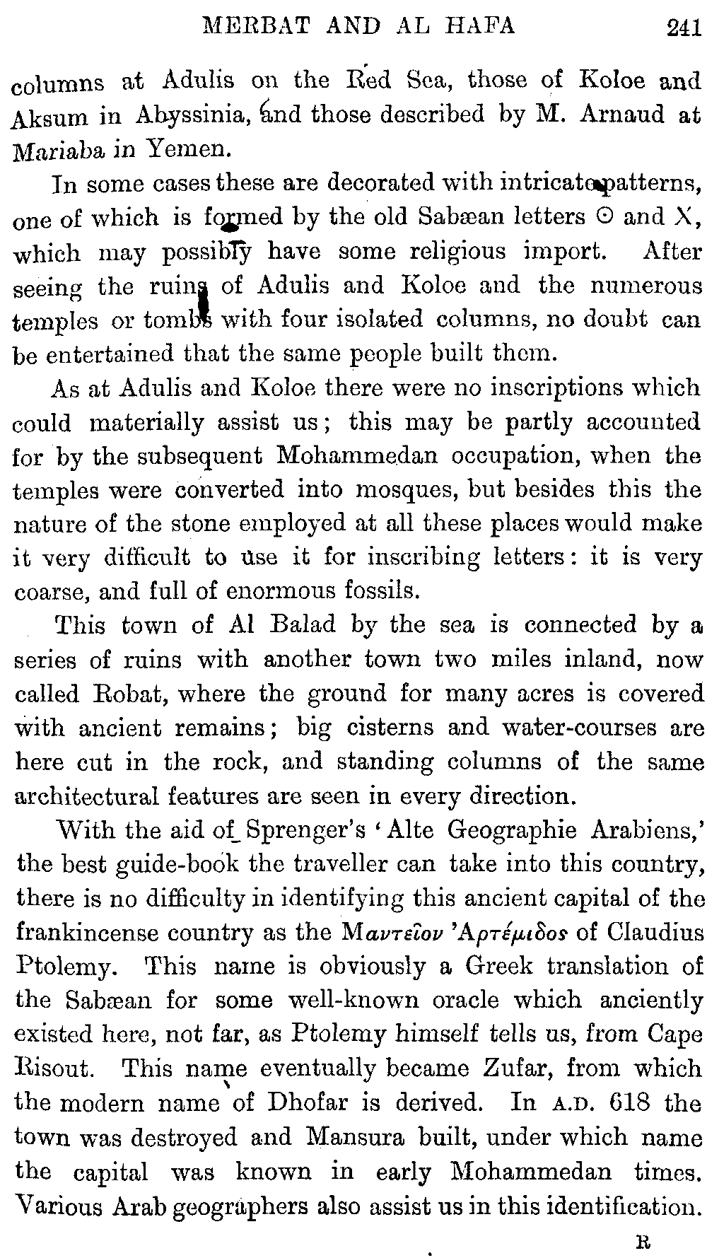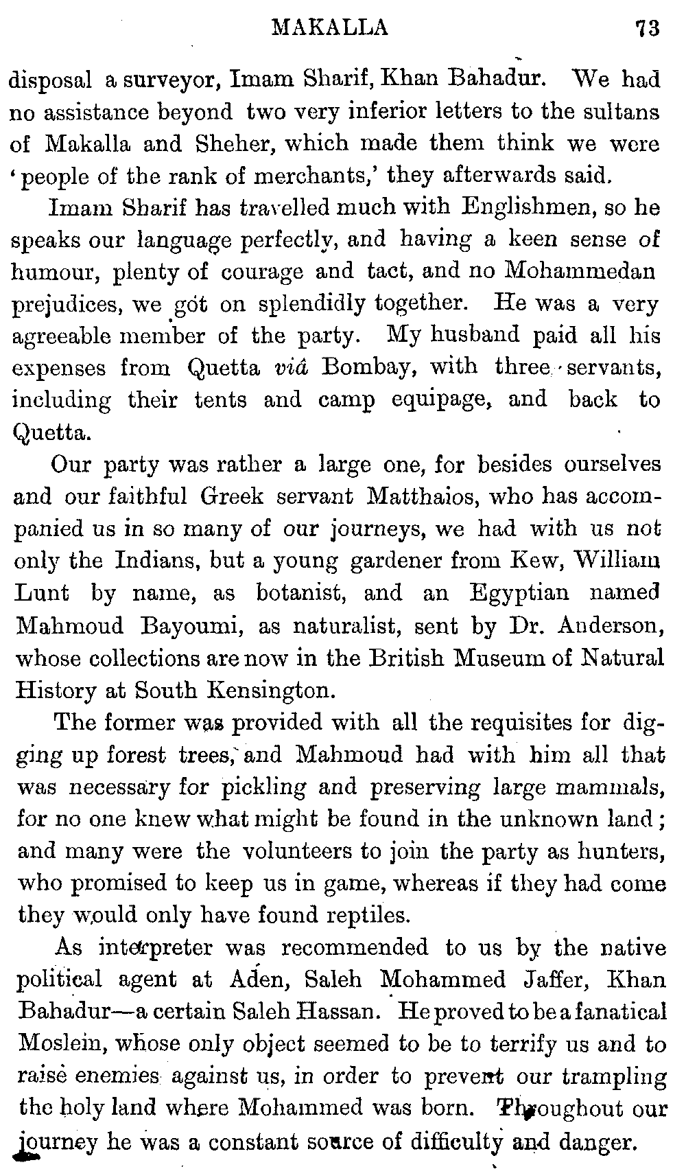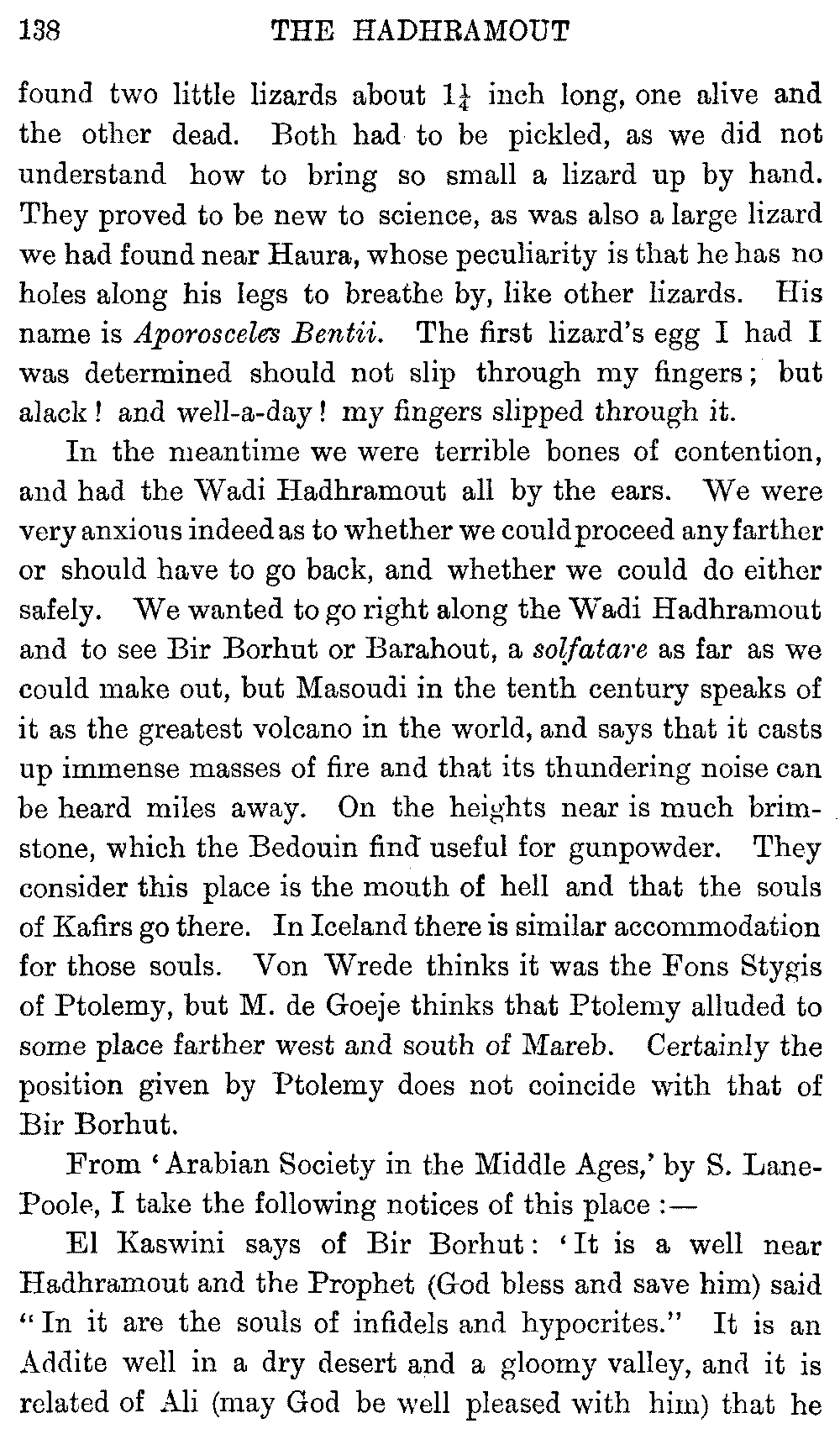 Ali Ibn al Husain, El Masudi, Abu al Hasan, Diodoros, Marco Polo, Sir John Maundeville, Pliny, the Periplus, Strabo, Ebn Said, Ptolemy, and others; but, as many of these names have been copied by me from rough notes of my husband's, I cannot be certain about the editions. I hope the imperfections of this bibliography will be excused.