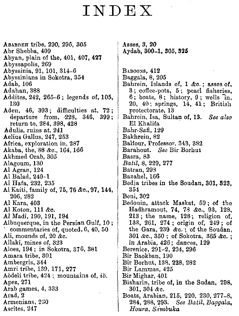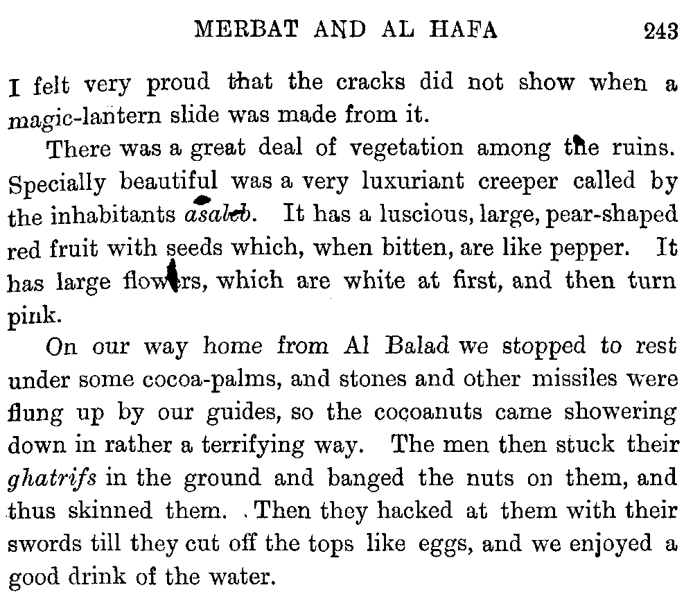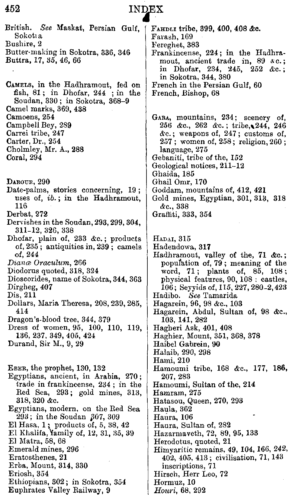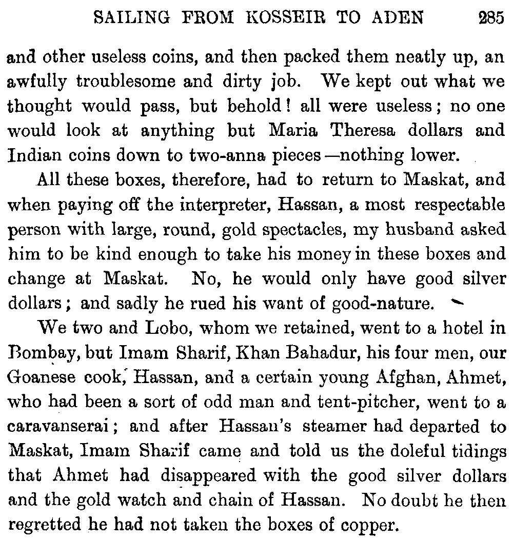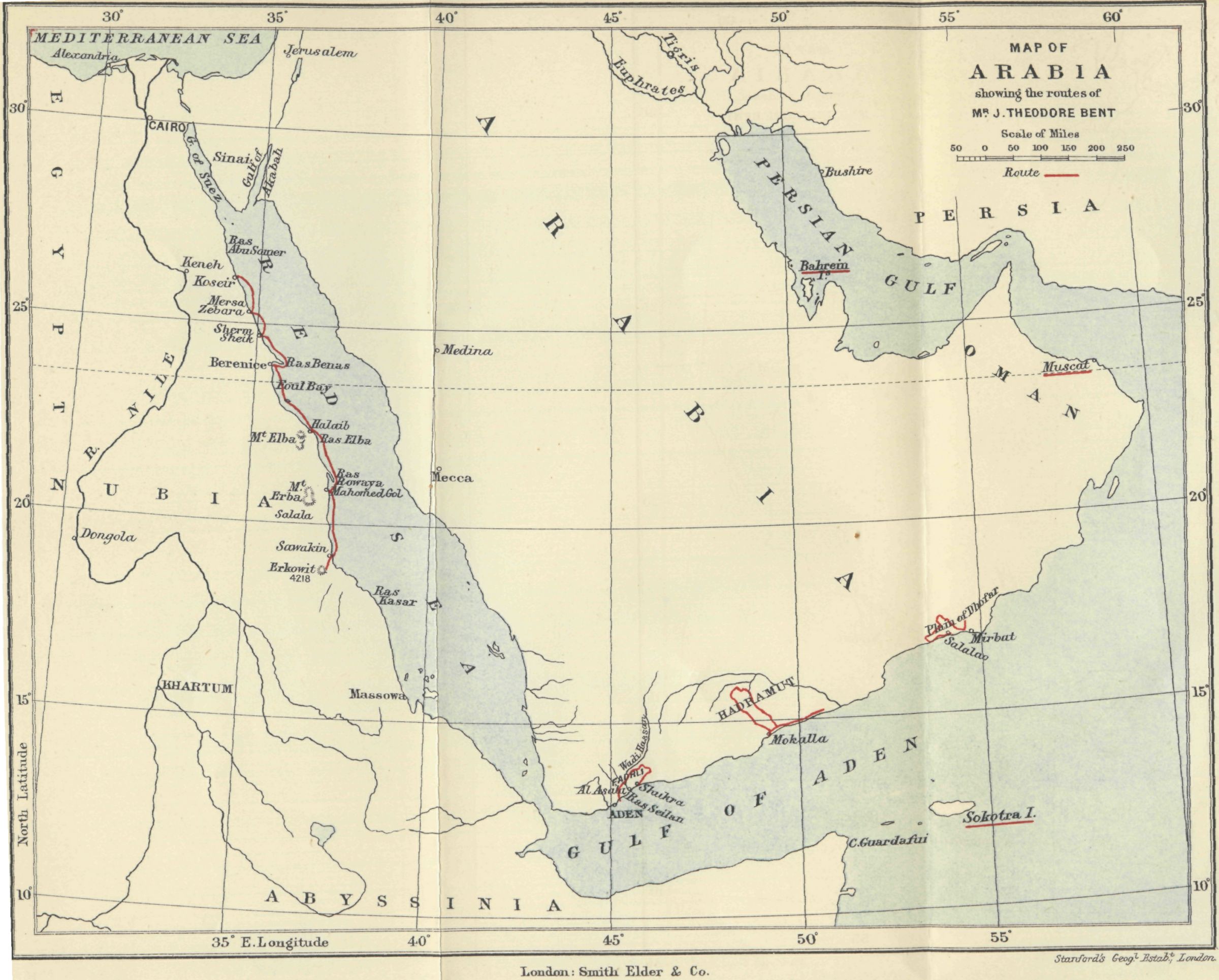 Ali Ibn al Husain, El Masudi, Abu al Hasan, Diodoros, Marco Polo, Sir John Maundeville, Pliny, the Periplus, Strabo, Ebn Said, Ptolemy, and others; but, as many of these names have been copied by me from rough notes of my husband's, I cannot be certain about the editions. I hope the imperfections of this bibliography will be excused.