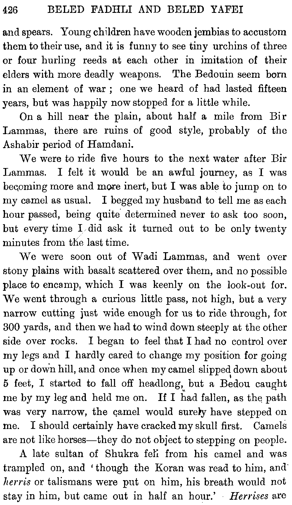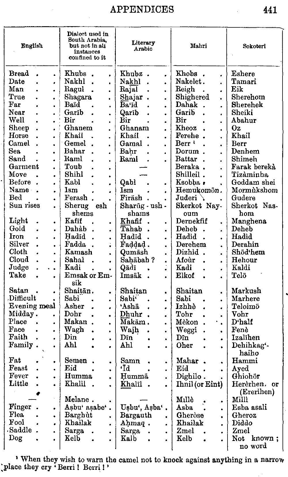 [15] When they wish to warn the camel not to knock against anything in a narrow place they cry 'Berri! Berri!'