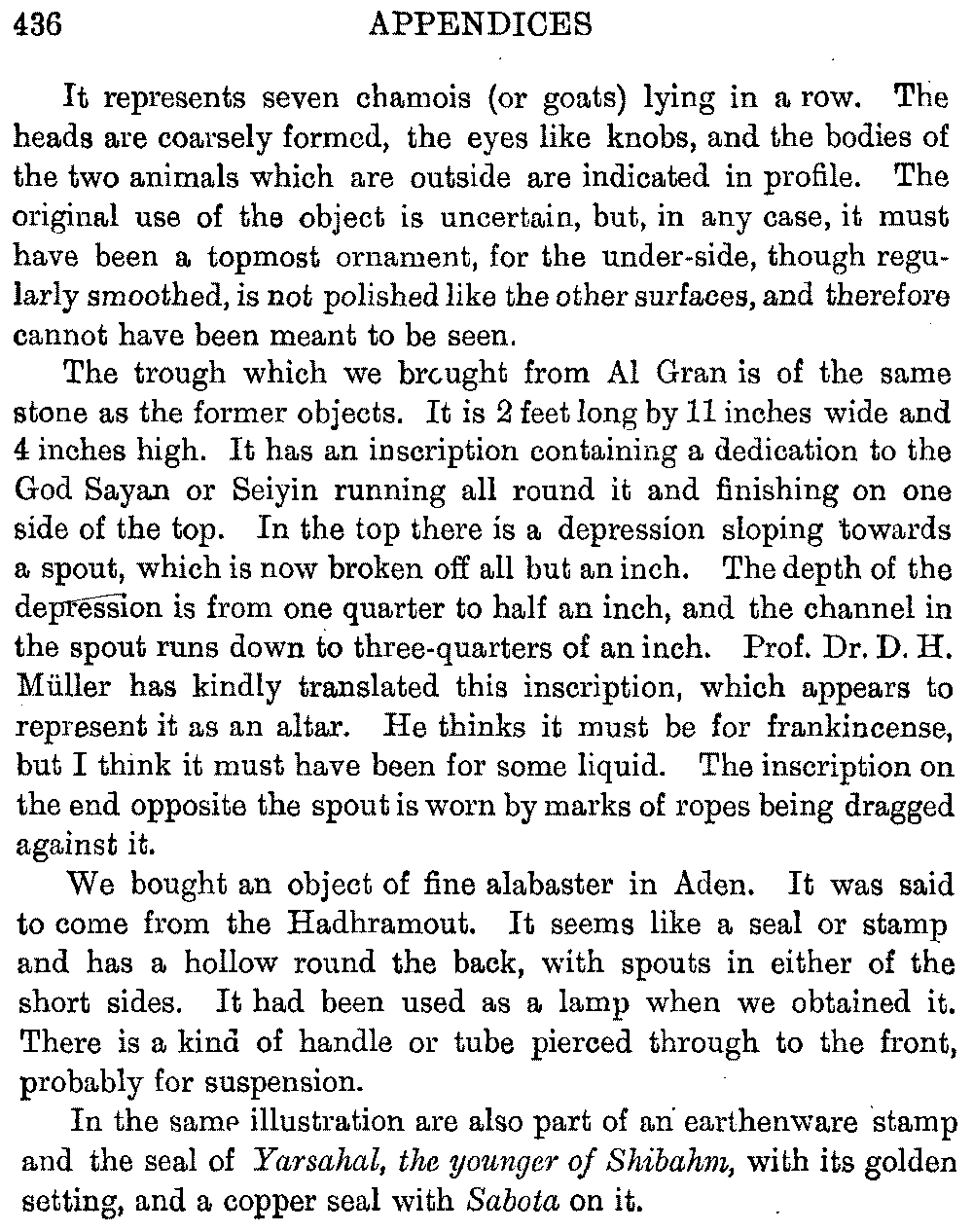 Müller, D. H.—Epigraphische Denkmäler aus Arabien (Denkschriften der K.K. Ak. der Wissenschaften Wien). Phil. Hist. Cl. 37, 1894. Himyarische Studien (Z. D. M., § 30). 1870.