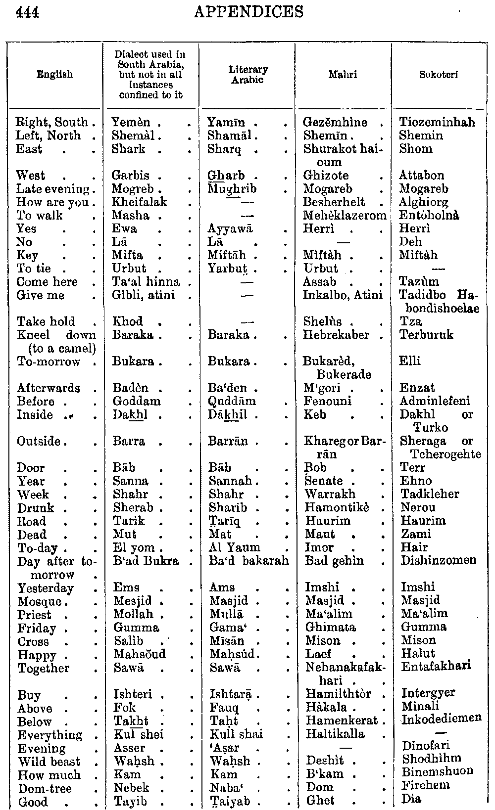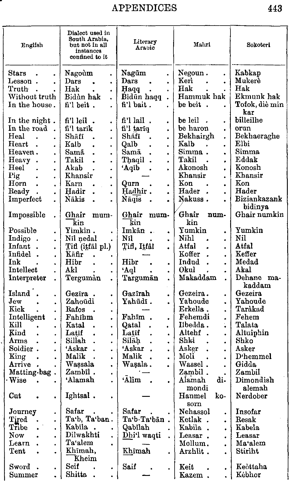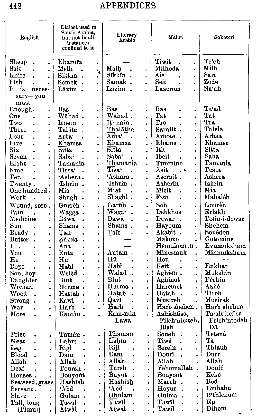 | English | Arabic | Mahri | Sokoteri |