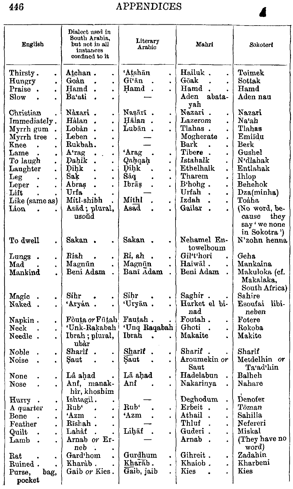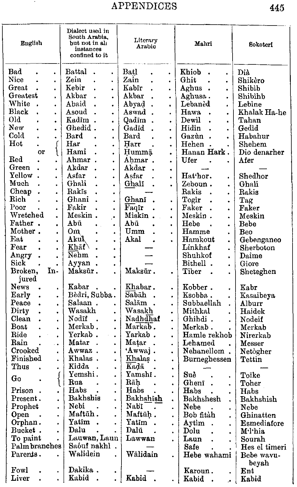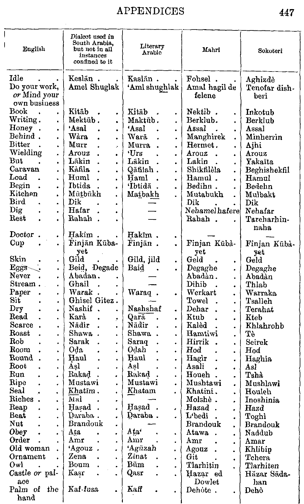 | English | Arabic | Mahri | Sokoteri |